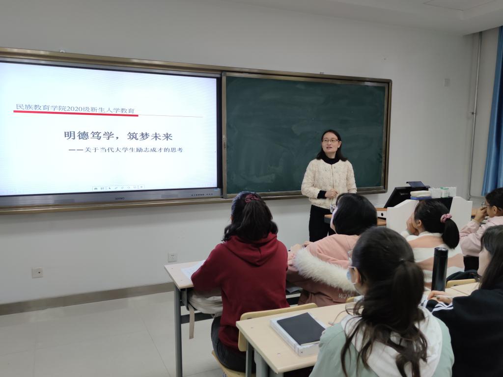 民族预科新生入学教育系列讲座《明德笃学,筑梦未来》由教师卢静主讲。卢老师提出在大学期间,同学们要完善自我,不断提升自身综合素养;做好大学学习、生活等方面的规划;增强时间观念,提高学习效率。同时,卢老师向学生推荐了一些阅读书目,鼓励同学们多读书,读好书,绘出大学阶段最美的图画,做有理想、有担当、有作为的新时代大学生。