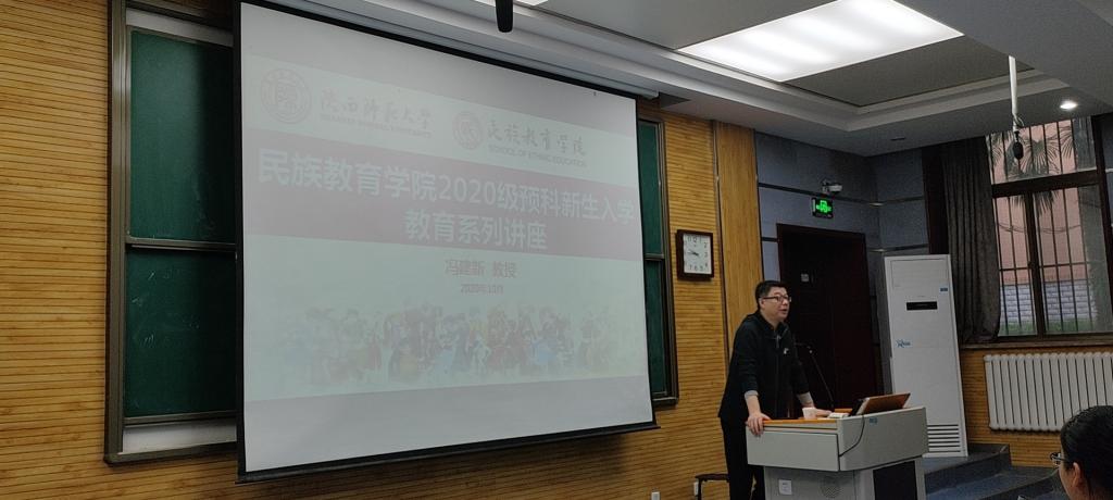 民族预科新生入学教育系列讲座《新时代奋斗的青春最幸福》在我校雁塔校区五号教学楼5101教室开讲。讲座由omofun 院长冯建新主讲,专职辅导员热依木主持,2020144名预科新生参加讲座。院长冯建新对2020级预科新生提出建议和希望,并指出新生要尽快明确大目标,并以认真、进取的态度向大目标迈进,充实过好在校生活的每一天。
