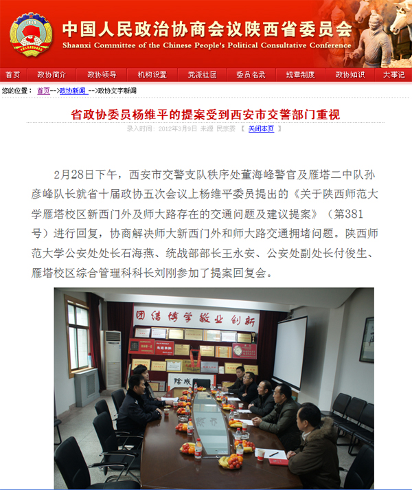 陕西省政协网站报道omofun 杨维平委员提案回复情况