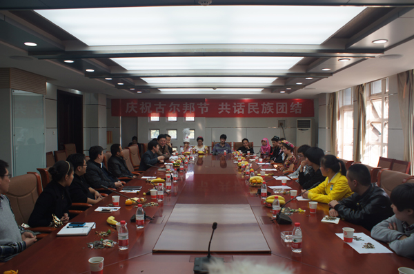 院长冯建新、研究生院研工部副部长宋传东、外国语学院副书记马正平、西北民族研究中心副教授哈宝玉、学生处教育管理科科长罗卫涛、校团委副书记戴璐、新疆教育厅选派干部艾山江等与全校20多名学生代表共同庆祝了回、维吾尔、哈萨克、乌孜别克、塔吉克、塔塔尔、柯尔克孜、撒拉、东乡、保安等10个少数民族的传统盛大节日——古尔邦节。座谈会由omofun
