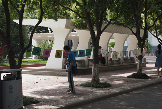 在喷泉广场西侧举办了2015年“民族团结活动月”系列活动之“民族文化走廊”书画、摄影作品展。