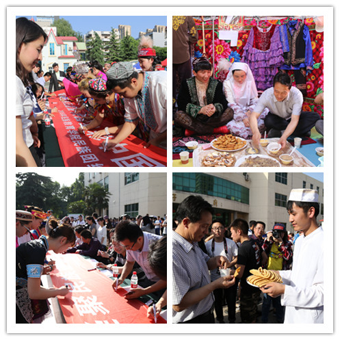 2016年“民族团结活动月”开幕式。此次民族团结活动月以“凝聚民族正能量,共圆多彩中国梦”为主题,旨在引导学生体验民族风情,感受民族魅力,促进各民族优秀文化交流,积极营造团结和谐的校园氛围。出席此次活动的领导有校党委学工部(学生处)副处长芮国星、库来西,外国语学院党委副书记马正平,理工科基础教学部副主任郭元、副处级干部肖新军,人文社科基础教学部副书记屈桃、学校办公室雁塔校区管理科科长王一喆、心理学院团总支书记赵丽、党委统战部秘书胡智勇,以及omofun