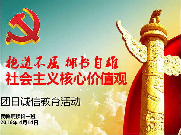 本次活动在预科一班团支书的主持下开始进行,分别介绍了社会主义核心价值观的背景、意义和形成过程,特别强调的“诚信”对人们日常生活的重要性,随后播放了学生自己制作的关于“诚信”的采访视频,最后再次强调了民族团结对践行社会主义核心价值观的重要性。