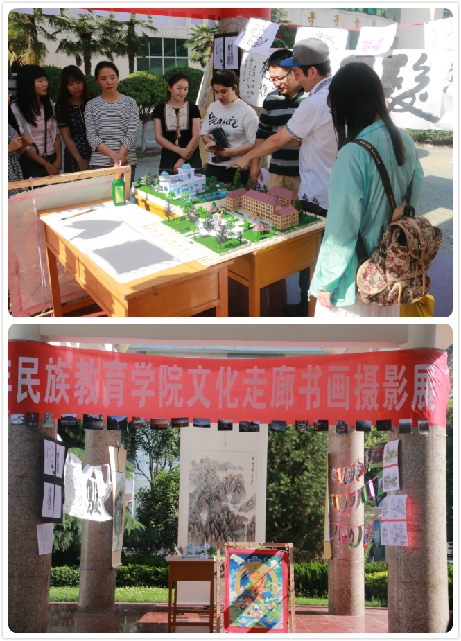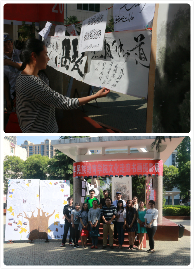2016年民族团结活动月系列活动之一“民族文化走廊”书画、摄影展及学习成果展于6月3日15:30在喷泉广场举办。学院副书记窦文阳、团总支书记萨仁娜,以及兼职辅导员参加了此次活动。