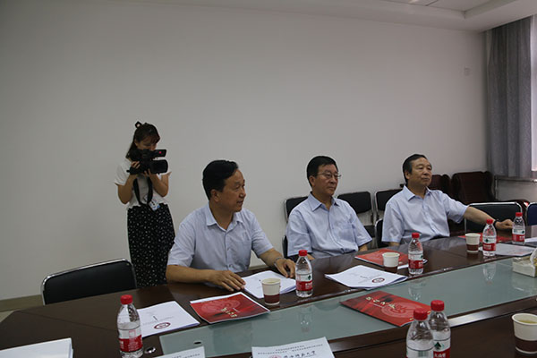 领导班子进行了座谈交流。学校党委书记甘晖、副校长冯旭东、校办主任马晓云热情接待并陪同考察。