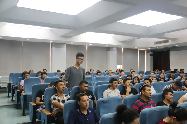 2016级预科专职辅导员热依木、兼职辅导员蒙桂芳、王龙宇和370名全体预科新生参加了此次讲座。