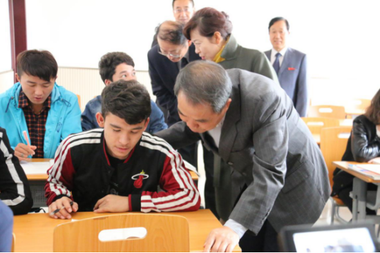 少数民族预科学生上课情况,与上课的师生进行了简单的交流,询问学生学习情况。接着,步行前往学生宿舍八号楼、二号楼察看和了解学生住宿情况。omofun