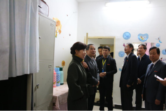 专职辅导员热依木热情地介绍了学生住宿条件和民族构成情况。国家民委副主任陈改户对少数民族学生宿舍条件、管理以及宿舍文化建设给予了肯定。期间,陈改户向辅导员热依木详细询问少数民族预科学生的学业情况和日常生活,希望日常的学生教育管理工作中,能够举办更多有意义的学生活动来提高他们的汉语水平,增强他们的自信心,加强各少数民族间的深入交流、交往和交融。最后,陈改户和王莉霞向辅导员热依木强调民族教育工作使命光荣,责任重大,继续努力,勤奋工作。