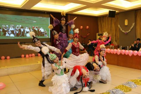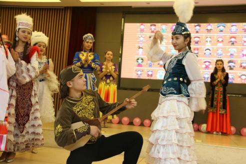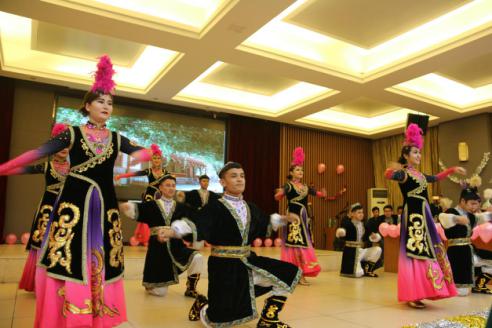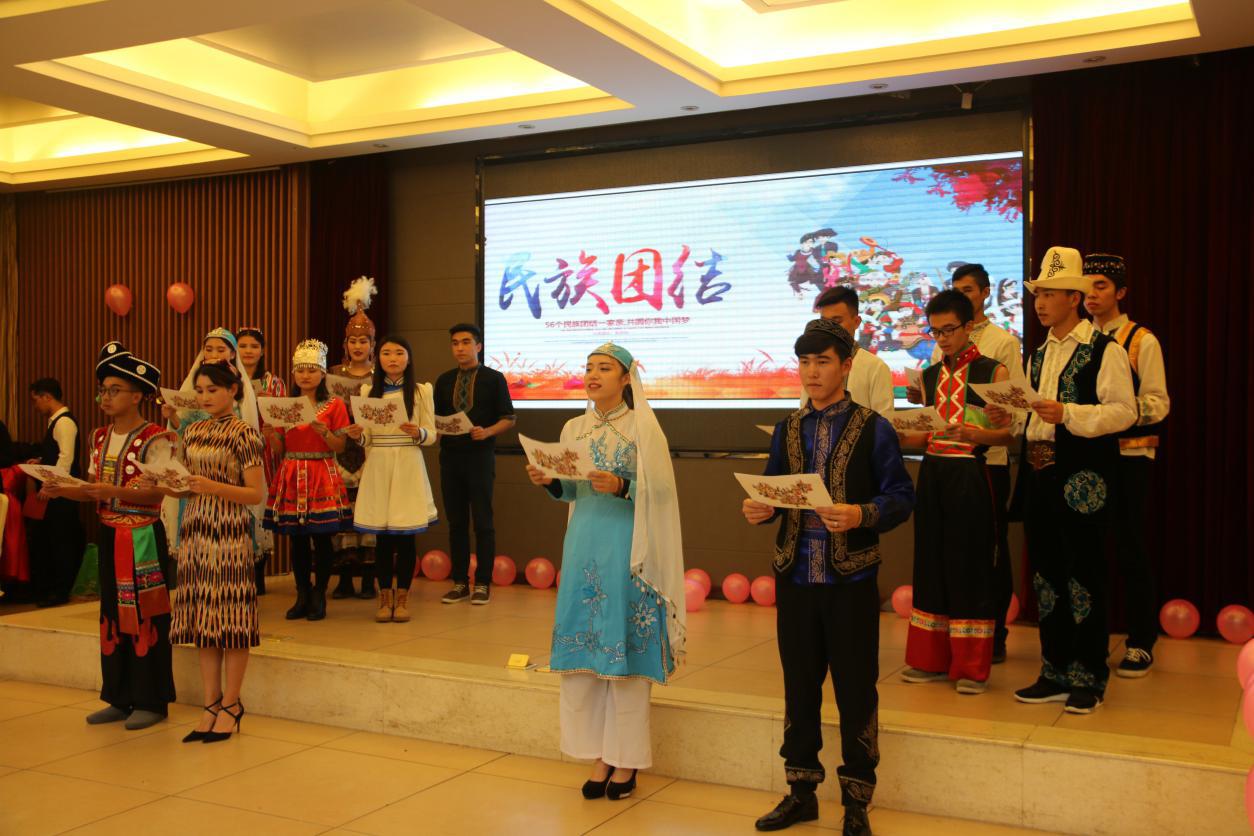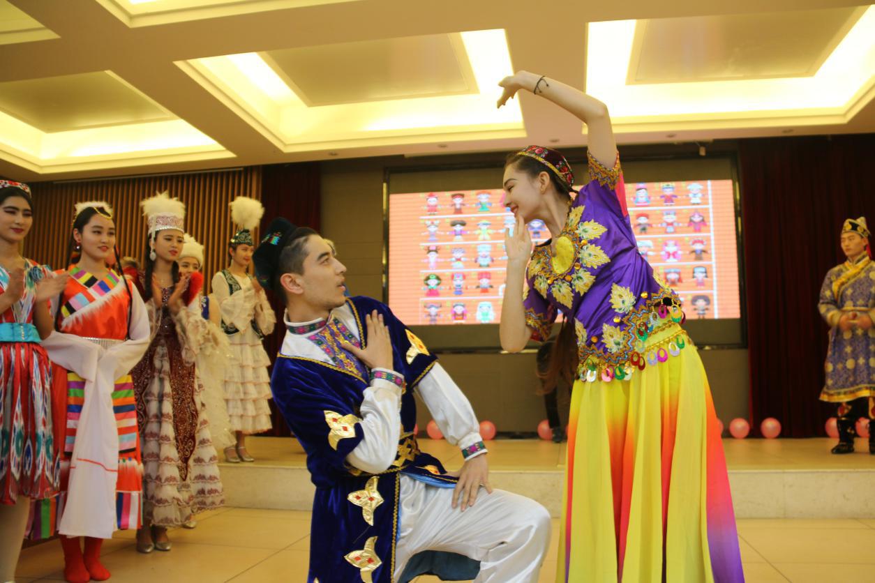 是一个相亲相爱的大家庭,各少数民族在大家庭中和睦相处,团结互爱。穿插其中的互动环节《猜猜看》拉近了师生距离,同学们积极参与,会场气氛热烈。最后,晚会在哈萨克族舞《歌舞青春》的欢快氛围中接近尾声。晚会临近结束,学院党总支副书记窦文阳对此次晚会给予肯定,他认为此次晚会是omofun
