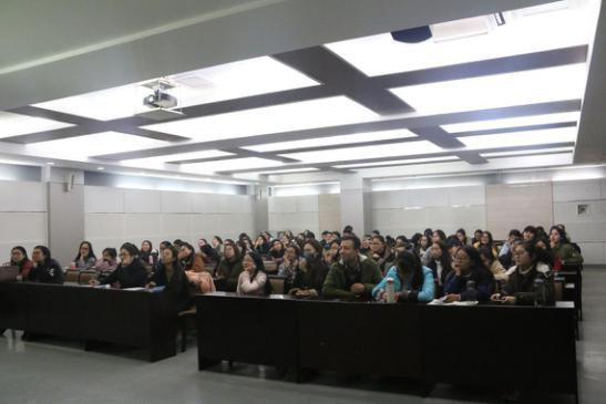 兼职辅导员蒙桂芳、刘雅丽、学院研究生会网新部全体成员和近百名预科生、民硕生参加了讲座。