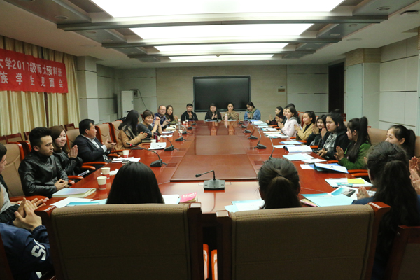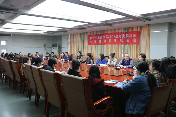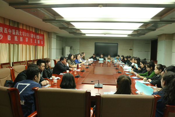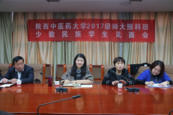 与2016级预科班少数民族学生举行见面会。参加见面会的有陕西省新疆籍少数民族学生教育服务管理协调站站长库来西、陕西中医药大学教务处副处长陈丹丹、新疆内派服务管理教师门新和、热依拉·艾山、学工部教育管理科科长高淼、学工部教育管理科干事吕腾、教务处干事赵力、陕西中医药大学2名在校生、我校omofun