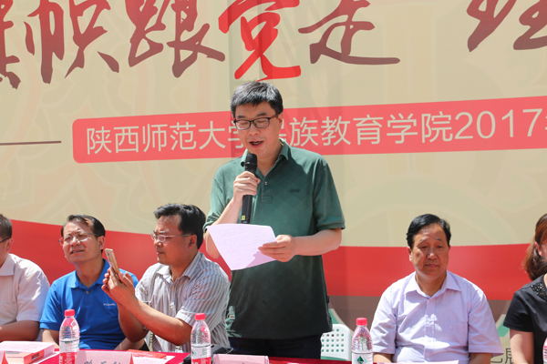 副校长冯旭东老师宣布2017年“高举旗帜跟党走 理直气壮传正声”民族团结活动月正式开幕。