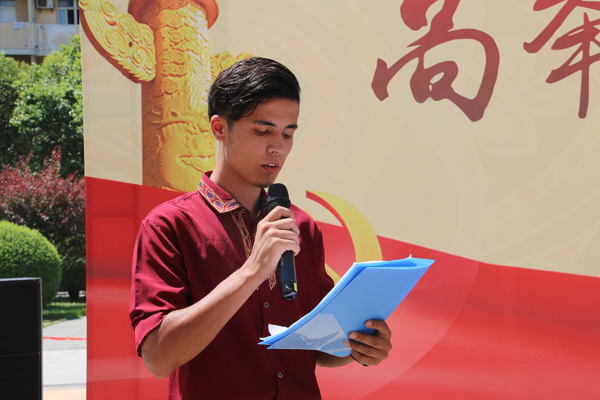 预科七班土力法尔作为优秀学生代表发言,他表达了对伟大祖国的感激之情,号召同学们自觉自信的传递正能量。