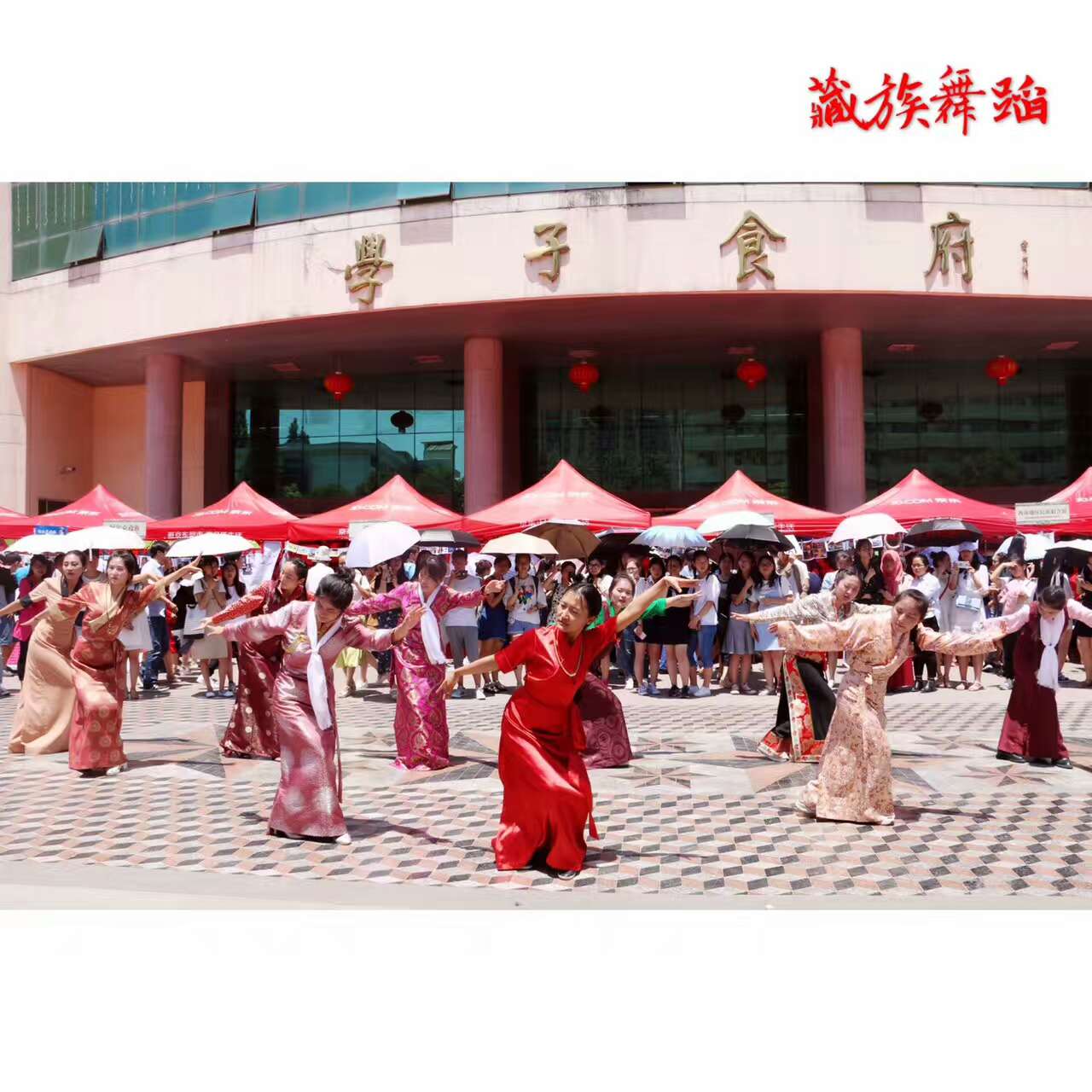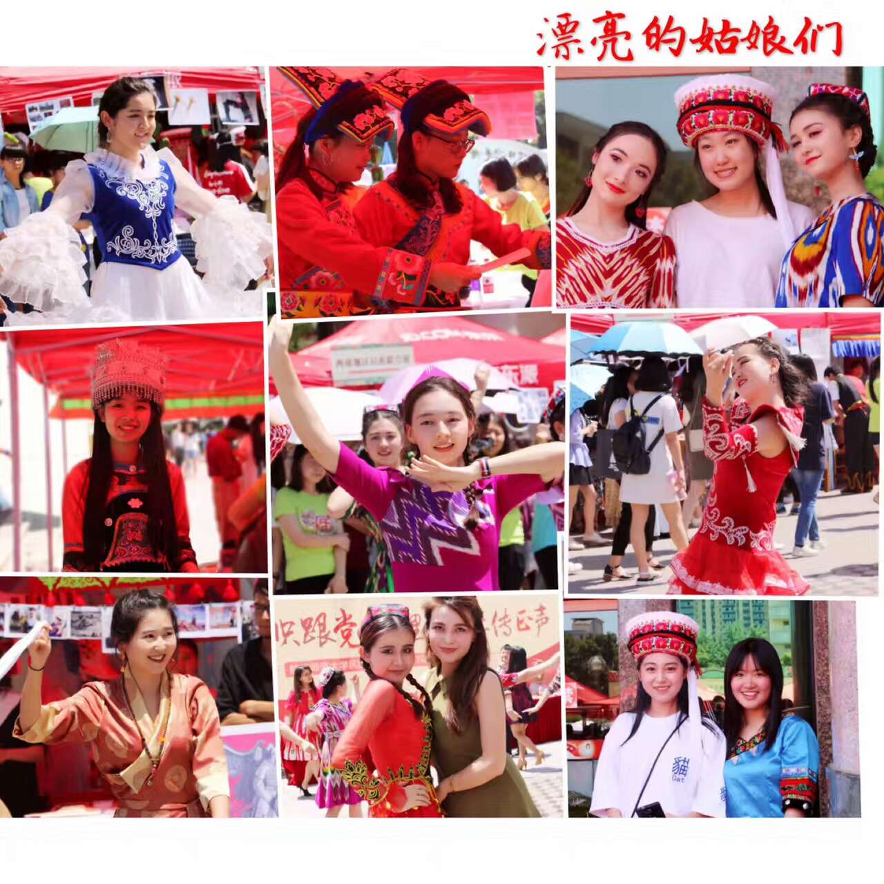 2017年民族团结活动月开幕式暨少数民族风情展在雁塔校区喷泉广场隆重举行。此次活动月以“高举旗帜跟党走 理直气壮传正声”为主题,旨在引导学生感受民族魅力,促进各民族优秀文化交流,积极营造团结和谐的校园氛围,培养学生爱党爱国的高尚情操。出席本次活动的领导有副校长冯旭东、党委统战部部长罗永辉、党委研究生工作部部长宋传东、后勤第一集团总经理路正社、旅游与环境学院党委书记刘少锋、外国语学院党委书记马正平、党委研工部教育管理科科长祁斌业、党委统战部正科级秘书王继夏、校团委副书记高扬、学生处雁塔校区教育管理科科长李晨子以及omofun