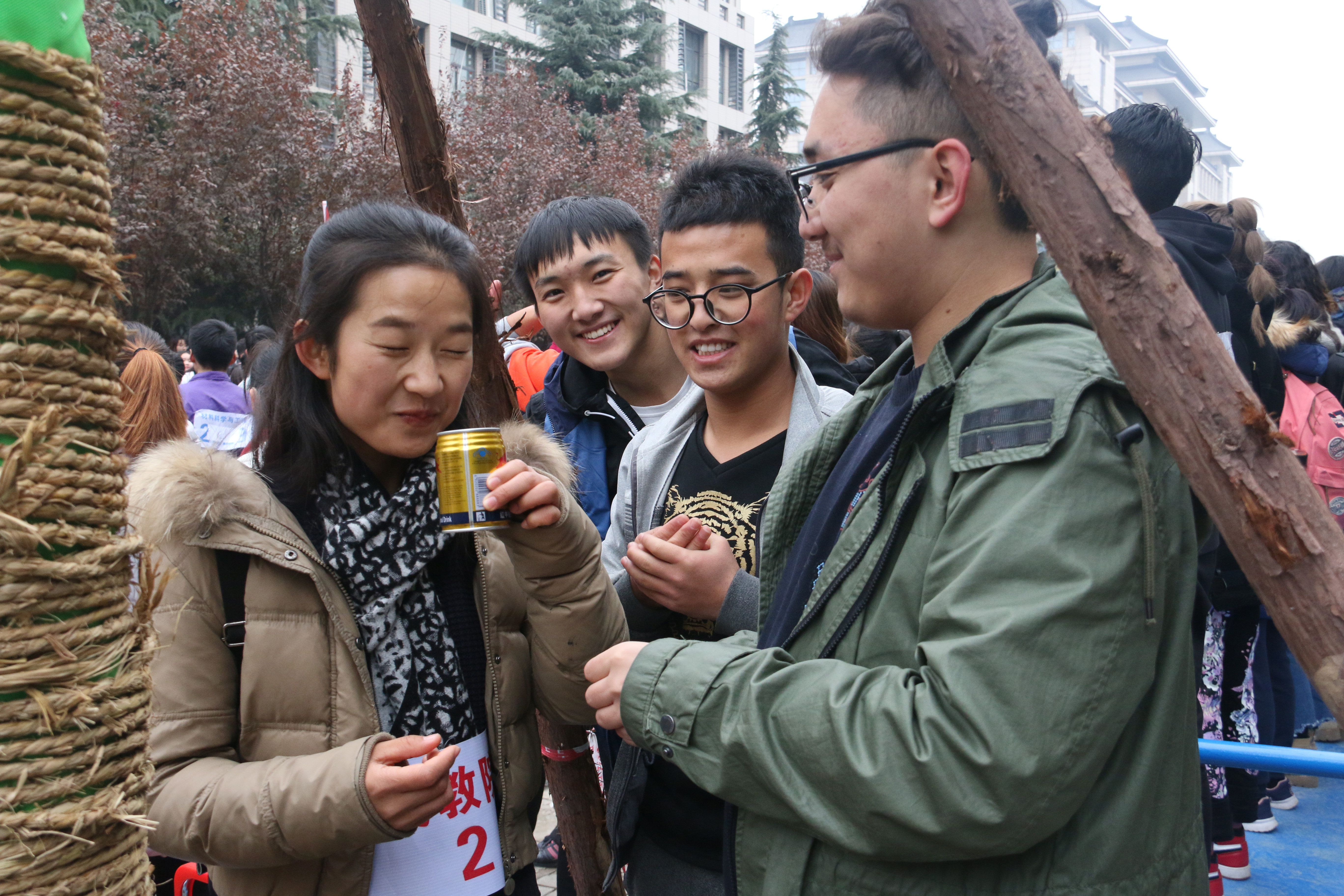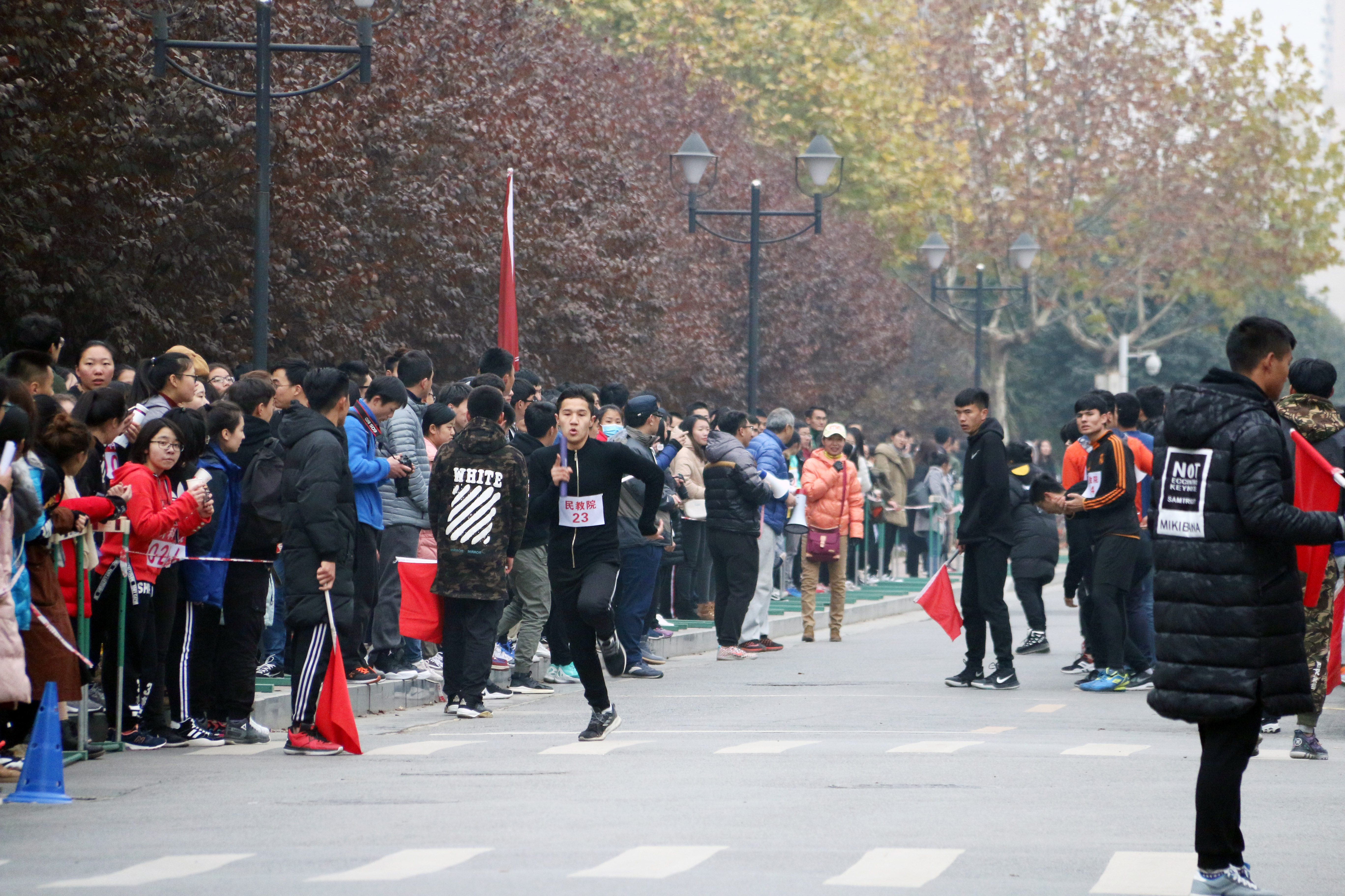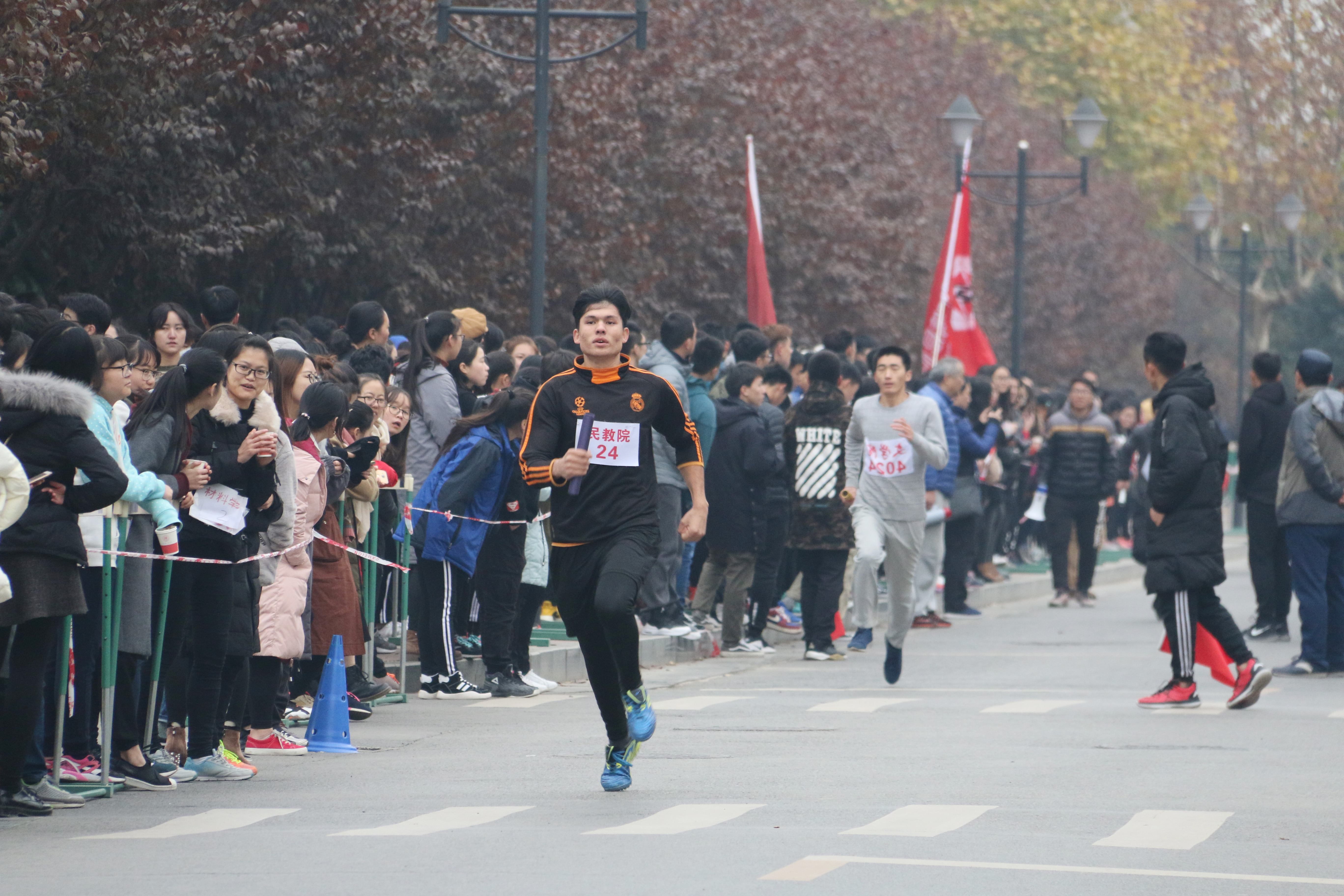 运动员们一个接一个地奋力奔跑着,每个脚步都伴着赛道两旁整齐有力的加油声,满怀激情,斗志昂扬,弘扬着新时代青年大学生的拼搏精神。接力棒传递着必胜的信念,传递着团结奋进的精神。老师和同学们的欢呼声,呐喊声也此起彼伏。志愿服务队的同学为运动员们准备好温水和饮料,提供了“温暖”的保障。在大家的共同努力下,omofun