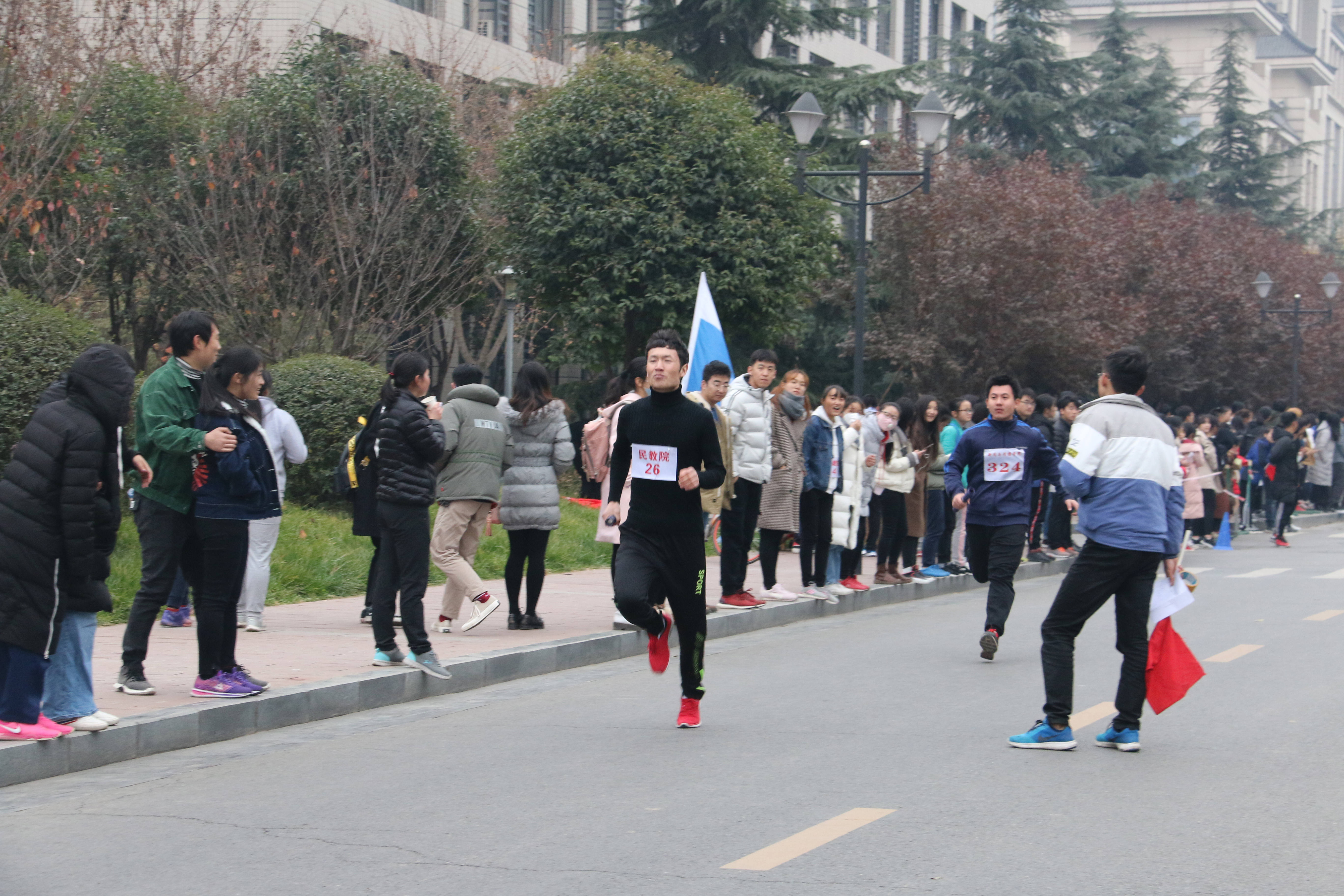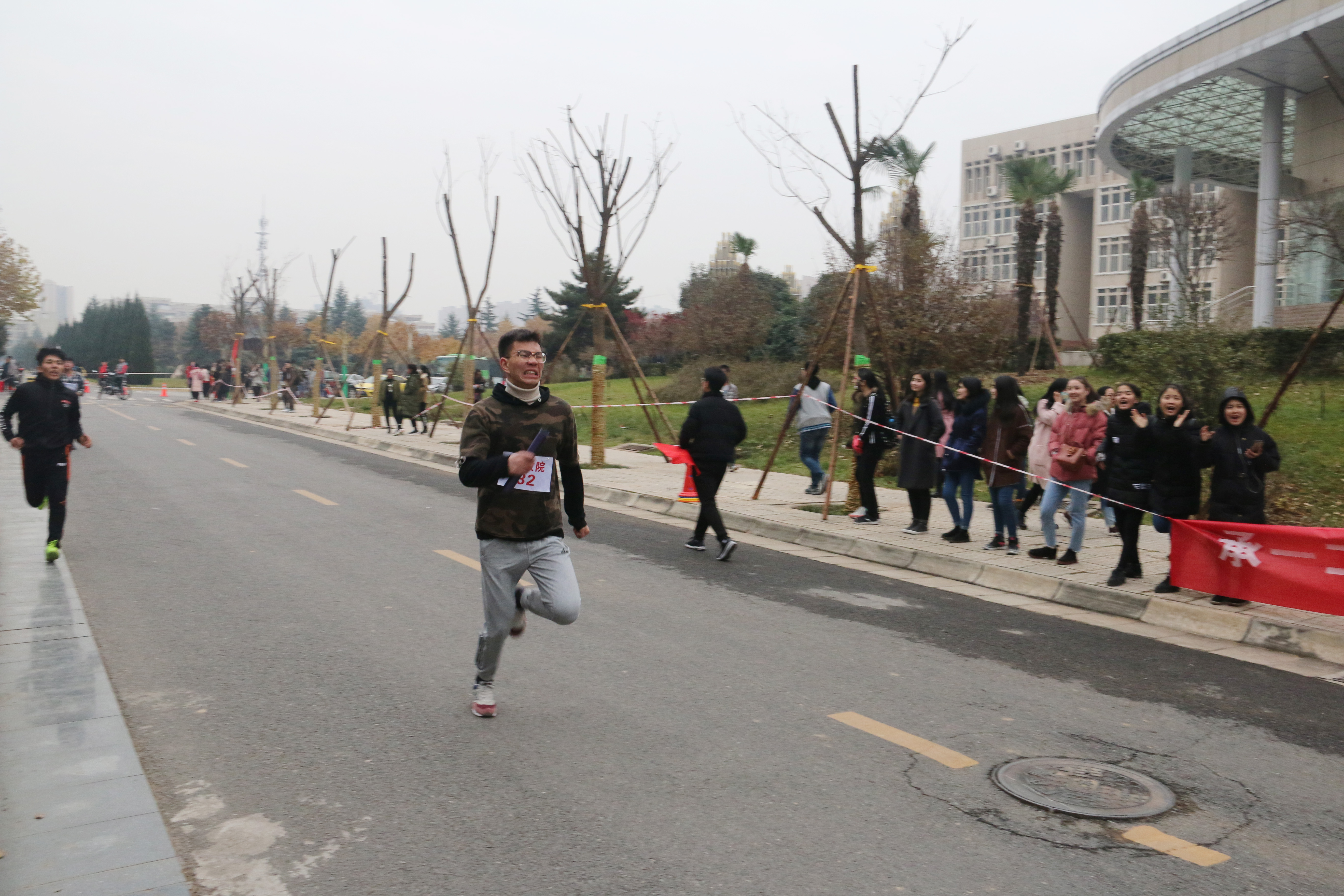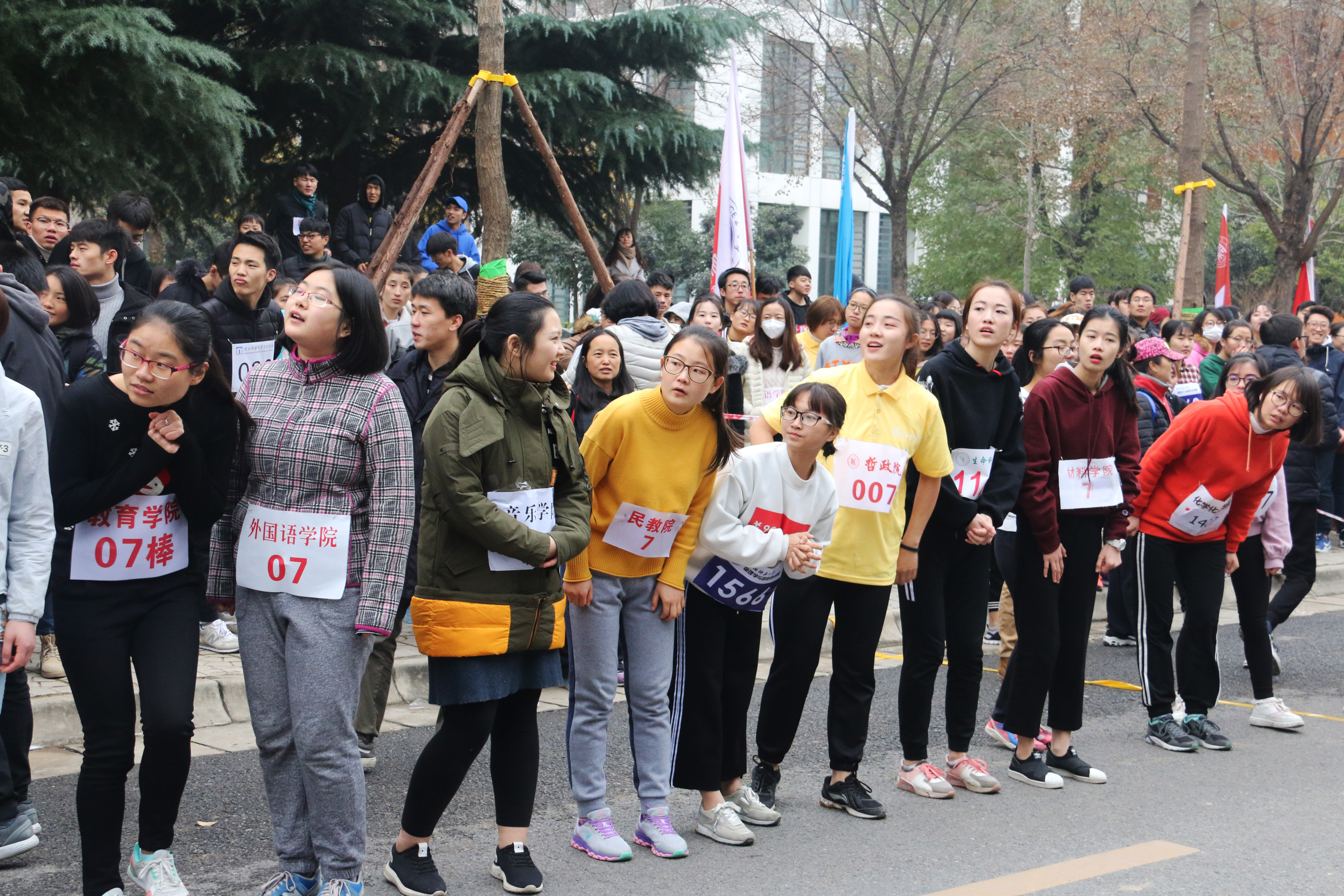 派出的运动员女生22人,男生10人参加比赛。比赛还未开始,准备就绪的比赛现场就已人头攒动,各院旗帜招展,五颜六色地点缀在校园里,格外引人注目。随着一声枪响,比赛正式开始。蓄势待发的运动员们迈着矫健的步伐向前冲去。天气寒冷,北风萧萧,依旧阻挡不了运动员们奋力奔跑的身影。在这场速度与毅力的较量中,omofun