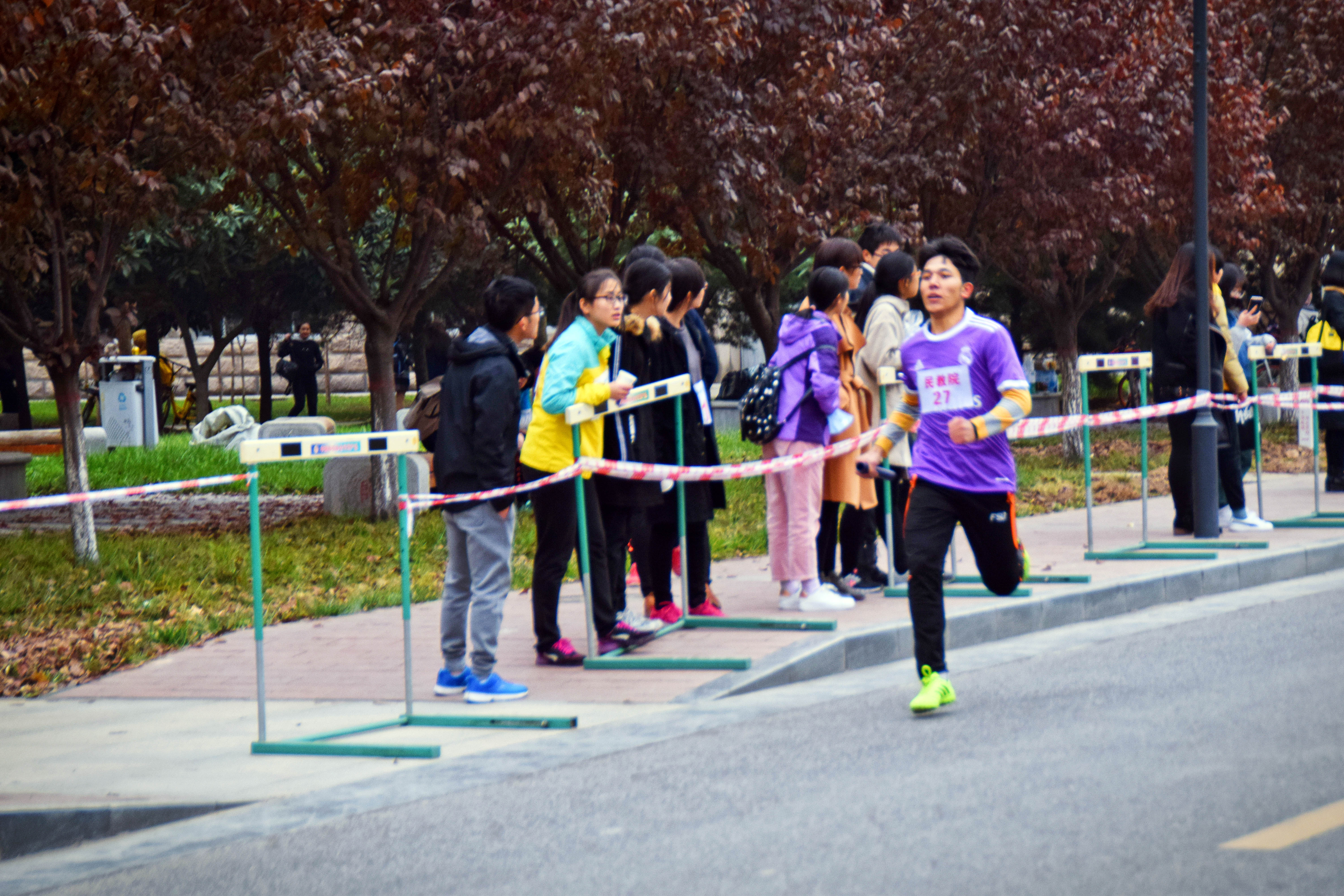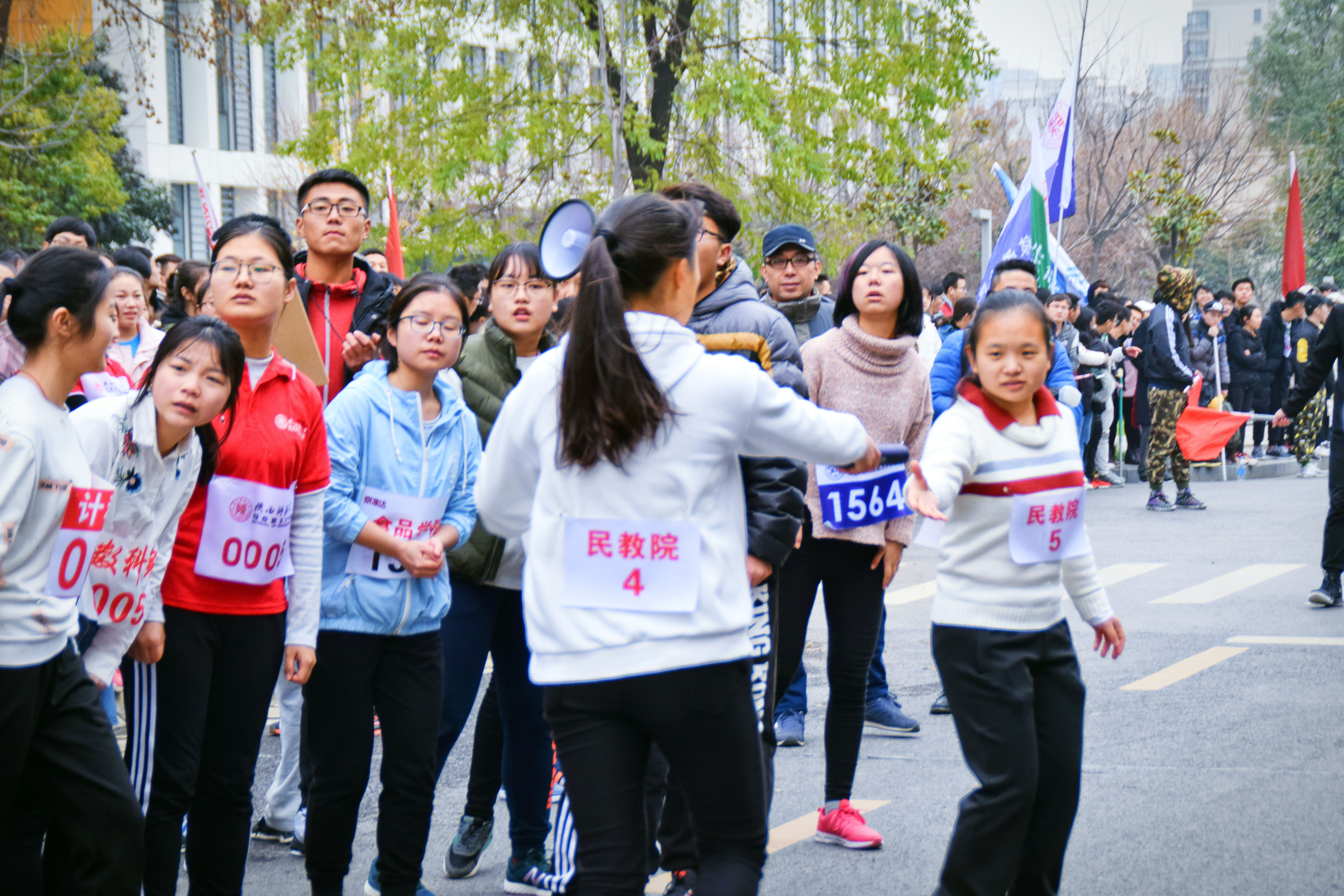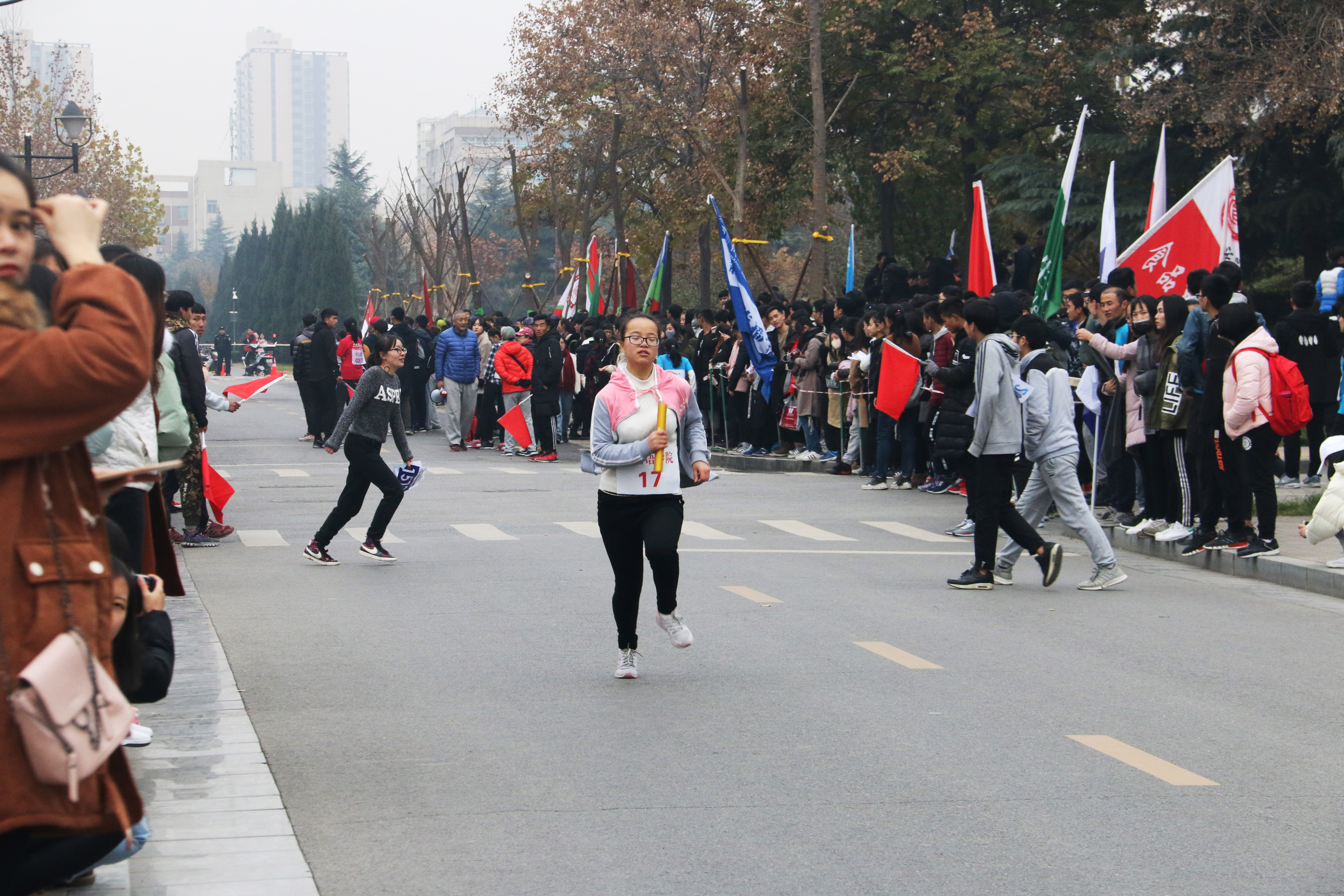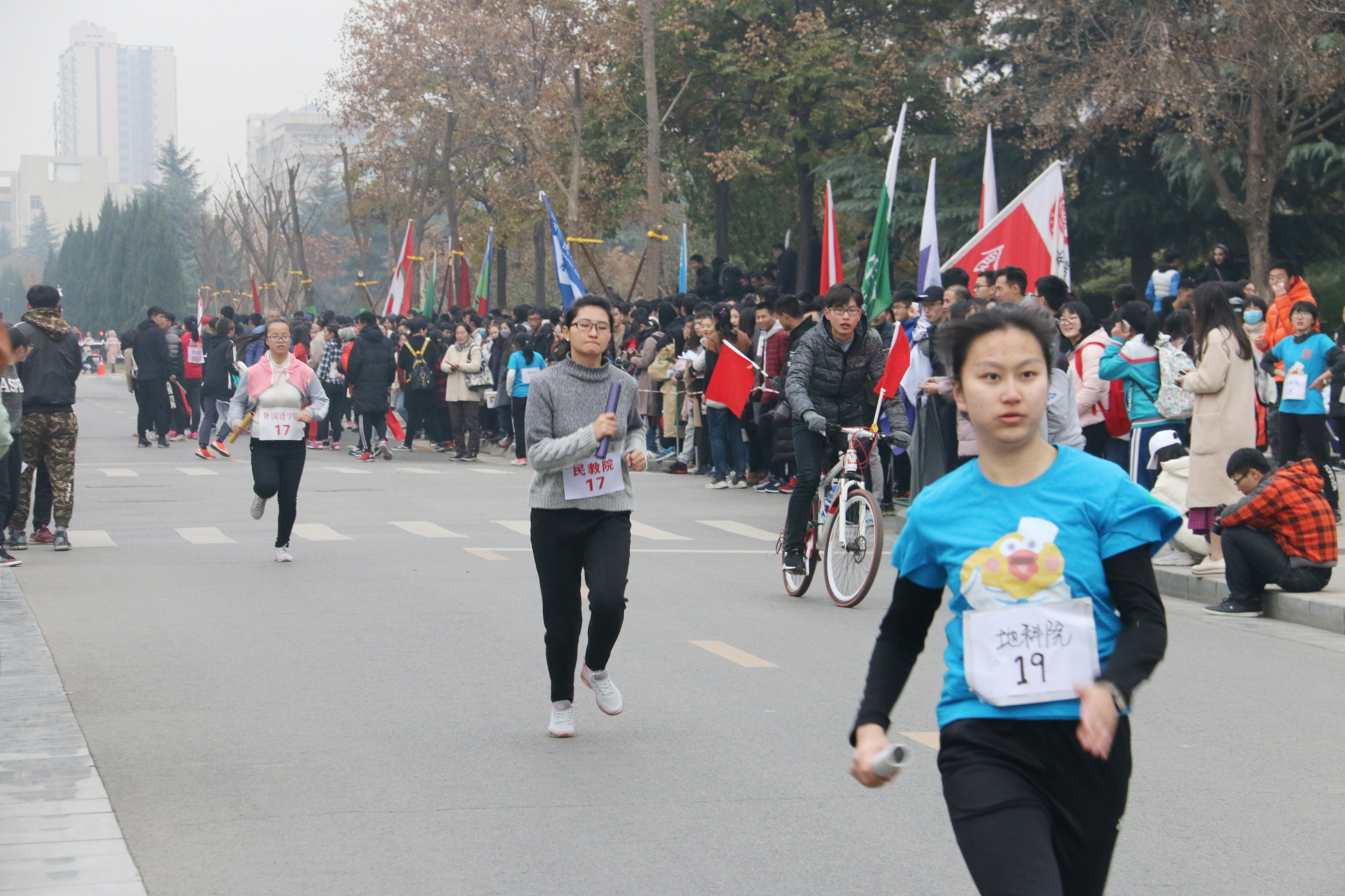 派出的运动员女生22人,男生10人参加比赛。比赛还未开始,准备就绪的比赛现场就已人头攒动,各院旗帜招展,五颜六色地点缀在校园里,格外引人注目。随着一声枪响,比赛正式开始。蓄势待发的运动员们迈着矫健的步伐向前冲去。天气寒冷,北风萧萧,依旧阻挡不了运动员们奋力奔跑的身影。在这场速度与毅力的较量中,omofun