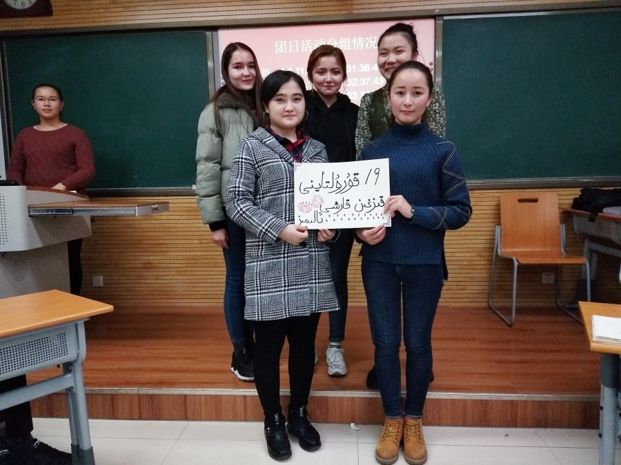 主持人在展开主题活动前,给预科三班的同学们播放了有关“各少数民族对十九大胜利召开的寄语”介绍了本次活动主题内容以及活动目的;带领全体同学,进行了“民族语言画报”展示,这一活动着重体现了omofun