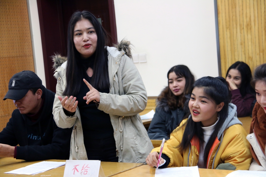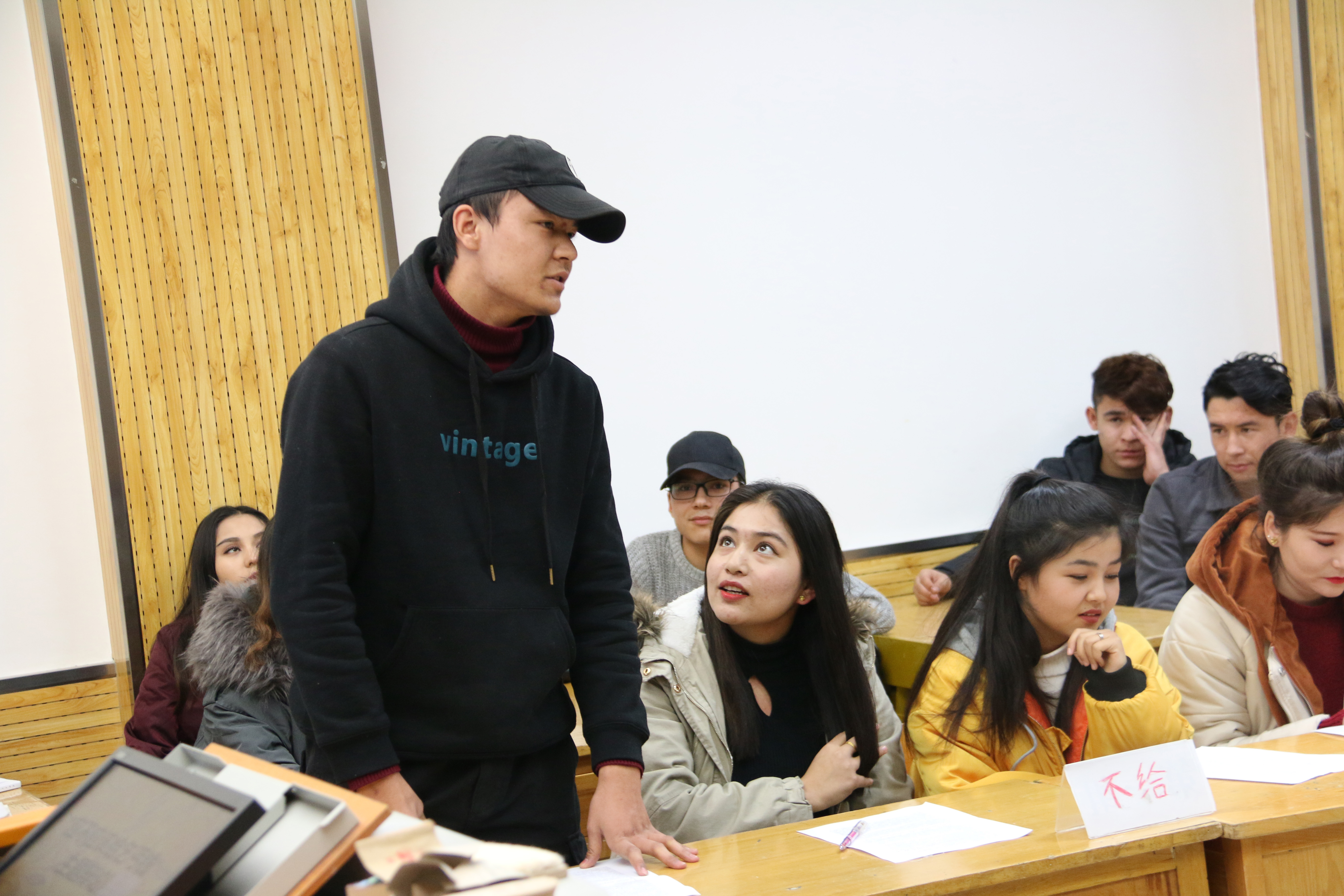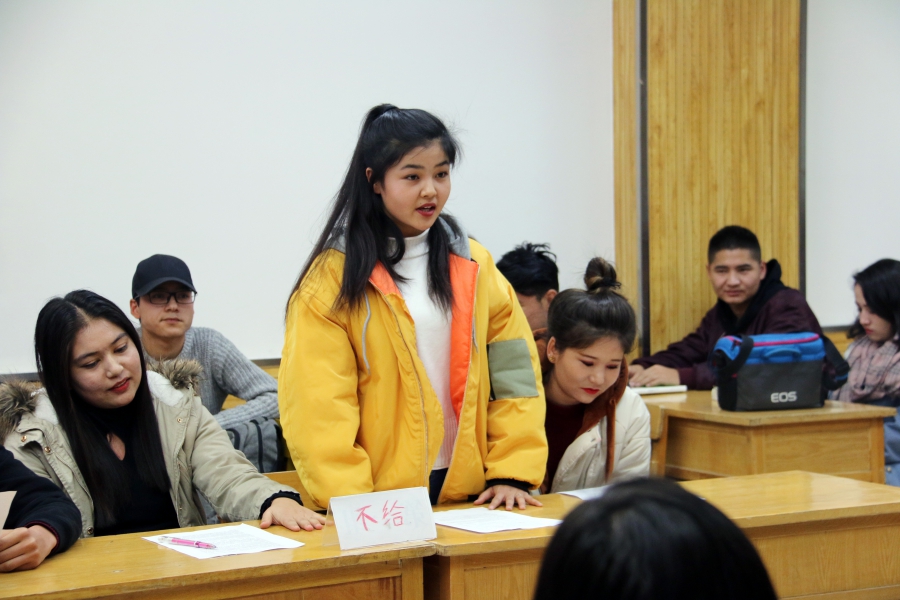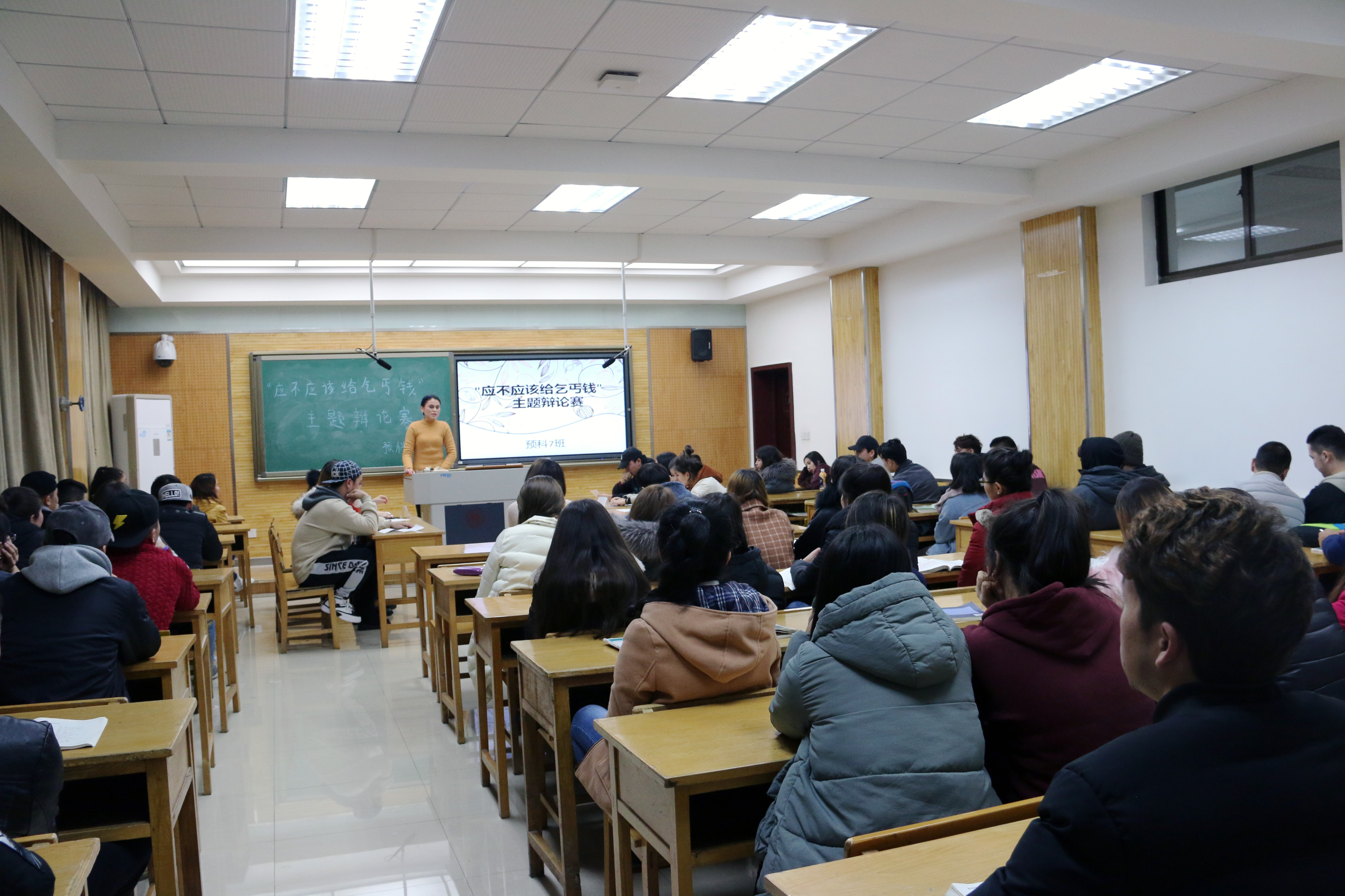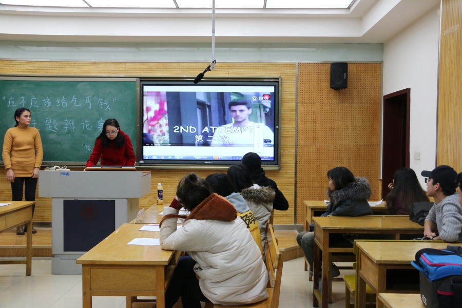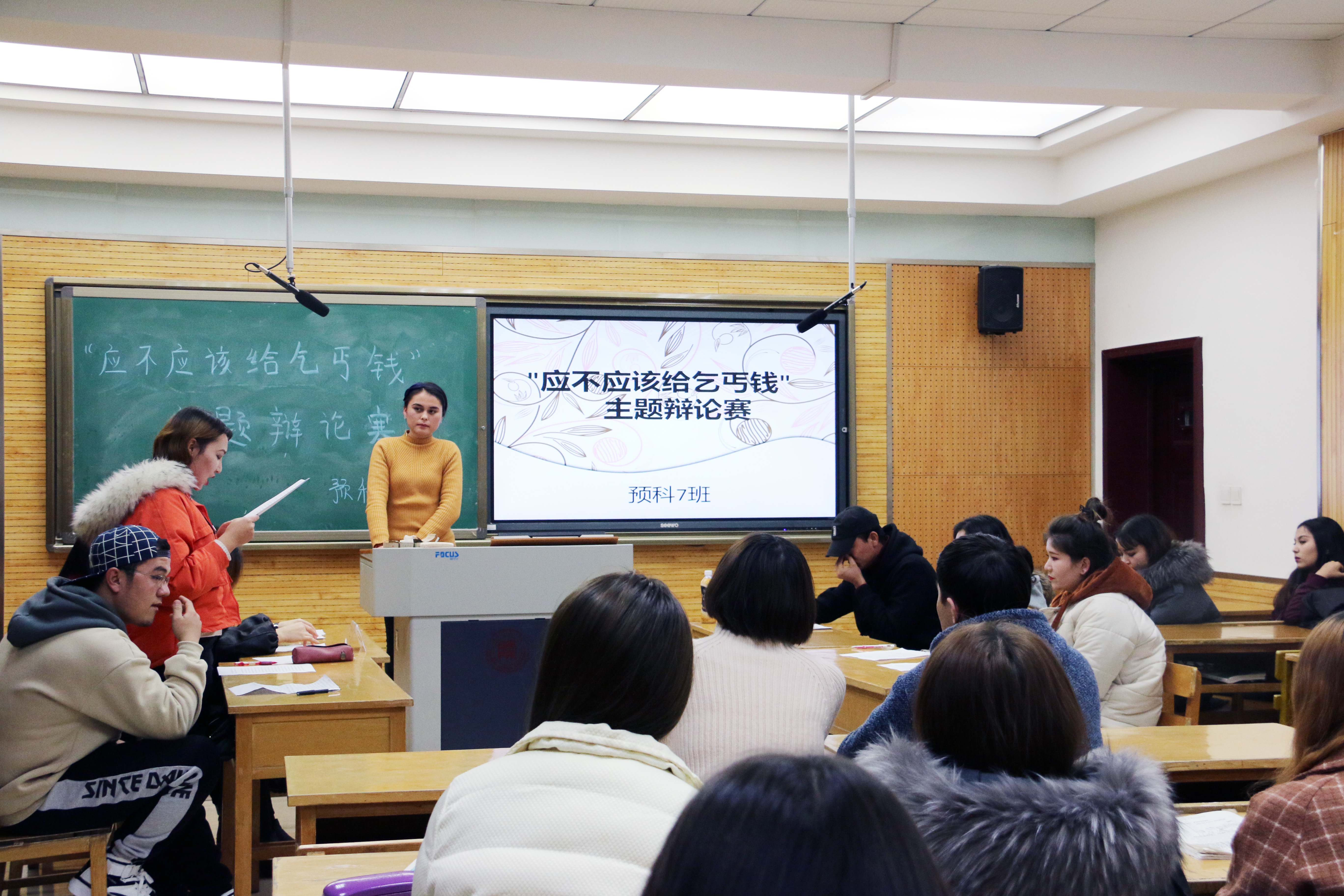 2016级两年制预科7班全体学生在五号教学楼5302教室,以“该不该给乞丐钱”为主题举行了一场辩论赛。此次辩论赛特邀omofun