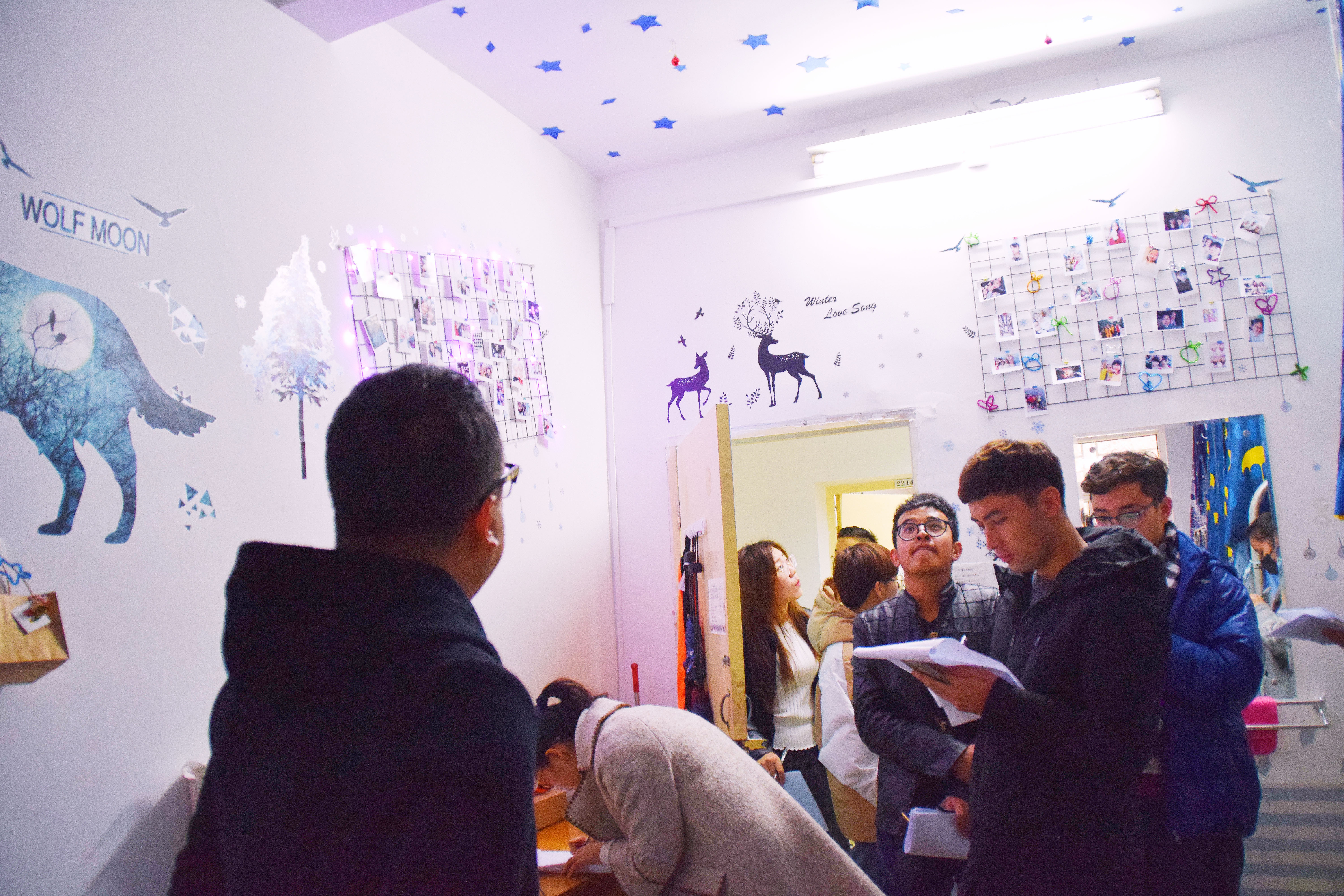 为营造良好的宿舍文化环境、建设和谐的宿舍氛围,进一步促进宿舍成员之间的交流合作,在气温骤降的12月,民教院开展了寝室文化建设评比活动,由omofun