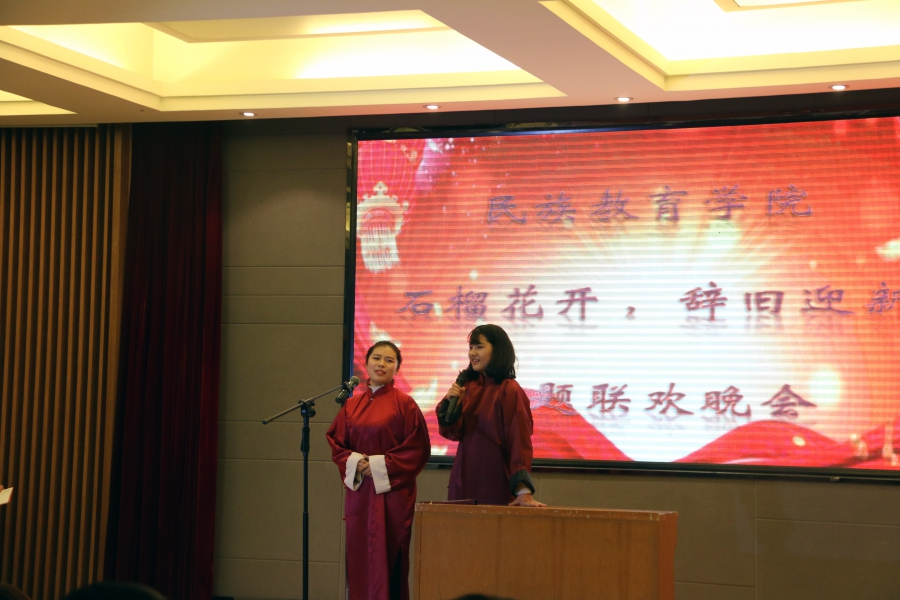 学生会主办,以“石榴花开,辞旧迎新”为主题的迎新晚会在我校雁塔区启夏苑二楼多功能厅拉开帷幕。omofun