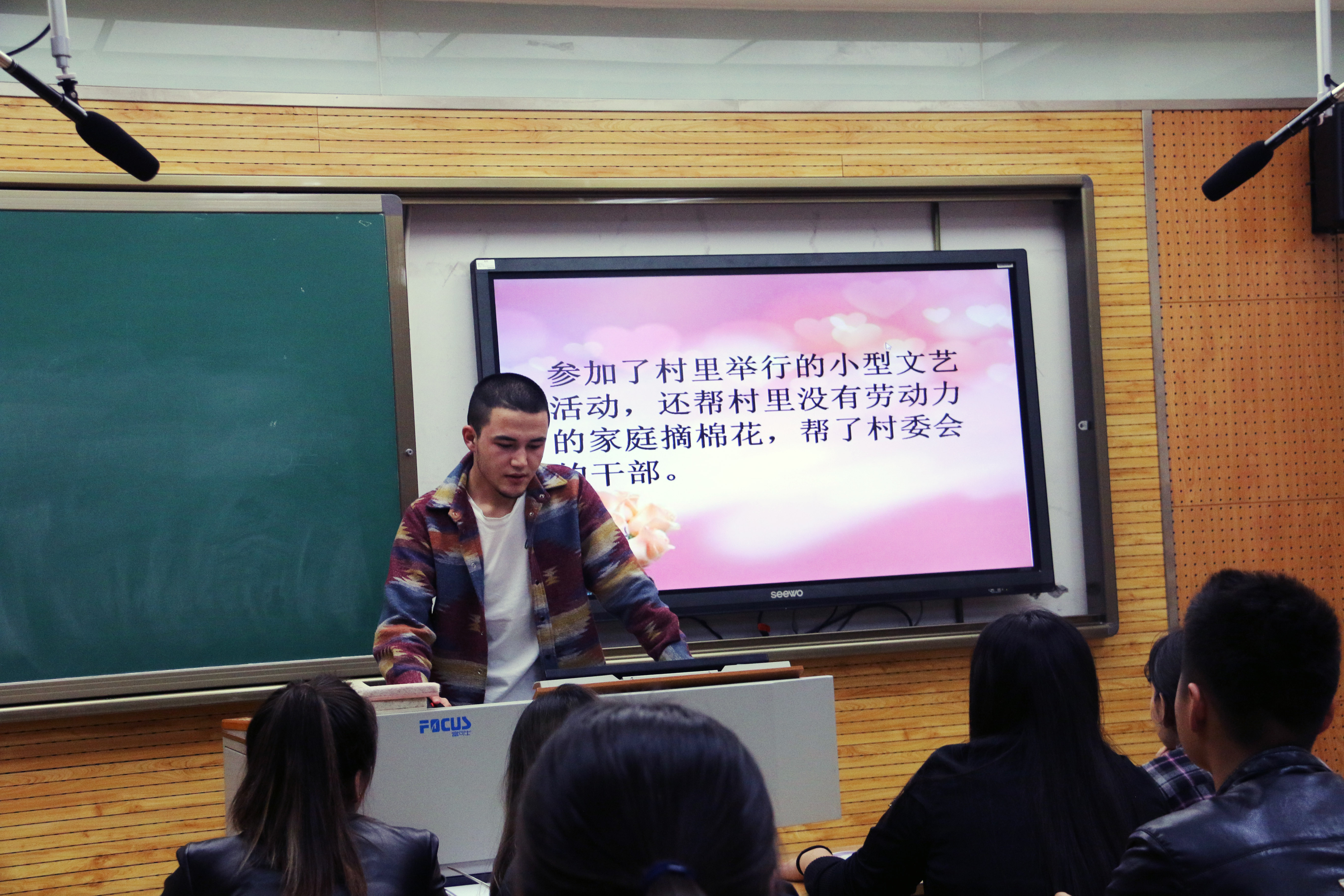 “这个假期,是一个奉献自我的假期”预科7班的阿力木·艾尔肯说到。他在家乡的丰富多彩的社区生活中感受很多,他说,他每周一参加社区举行的升旗仪式,感叹在看到国旗飘扬在碧空中那一刻的庄严与自豪;他更感受到利用自己空闲时间替社区搜集住户资料、随社区干部一同走访贫困家庭,在寒风中送去温暖时被称赞的喜悦之情。大家也被阿力木同学在严寒中进行社区服务献爱心活动的奉献精神,为社区服务的高涨热情所动容,从中感受到了的这个寒假社区生活的意义非凡。