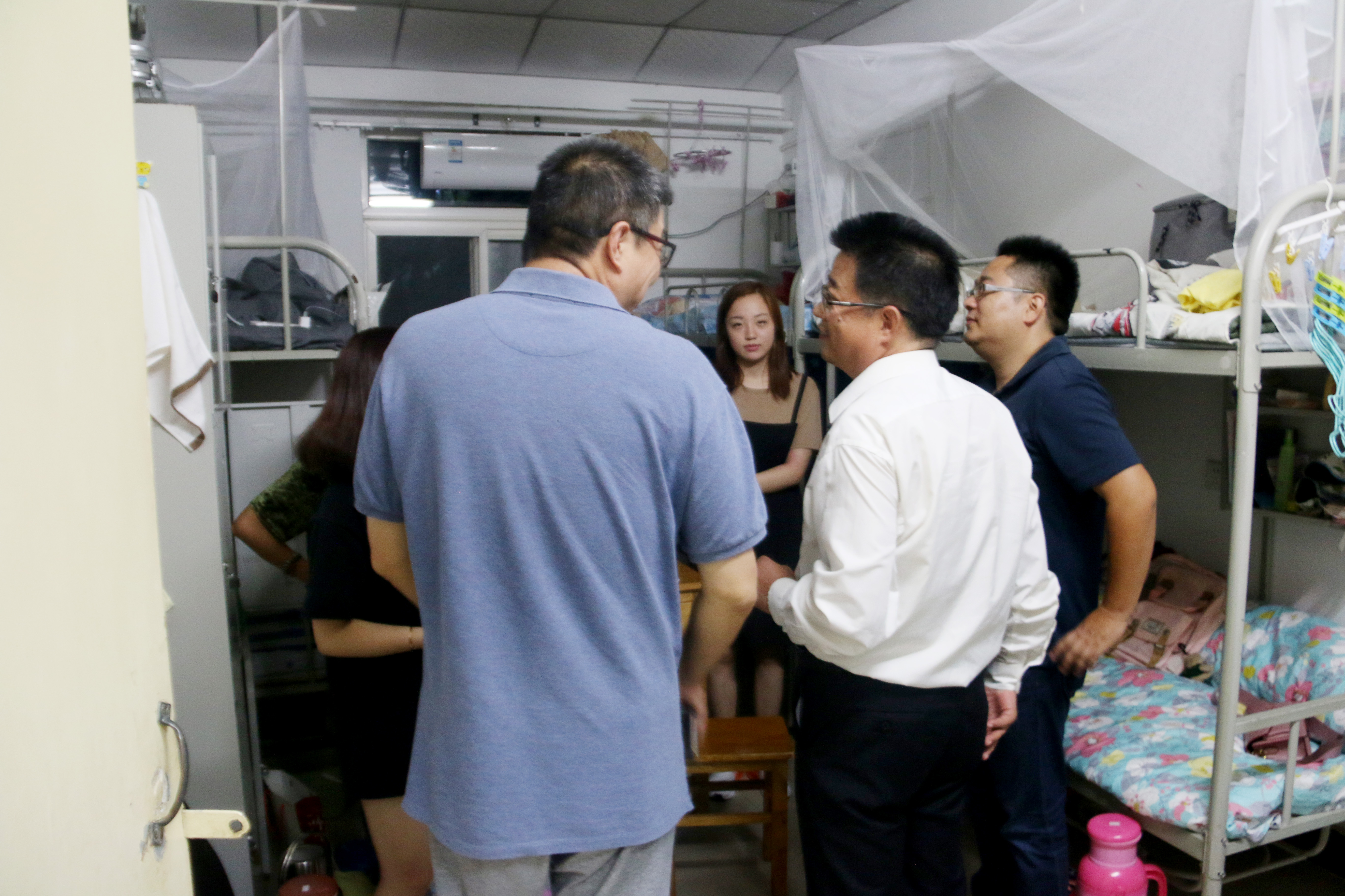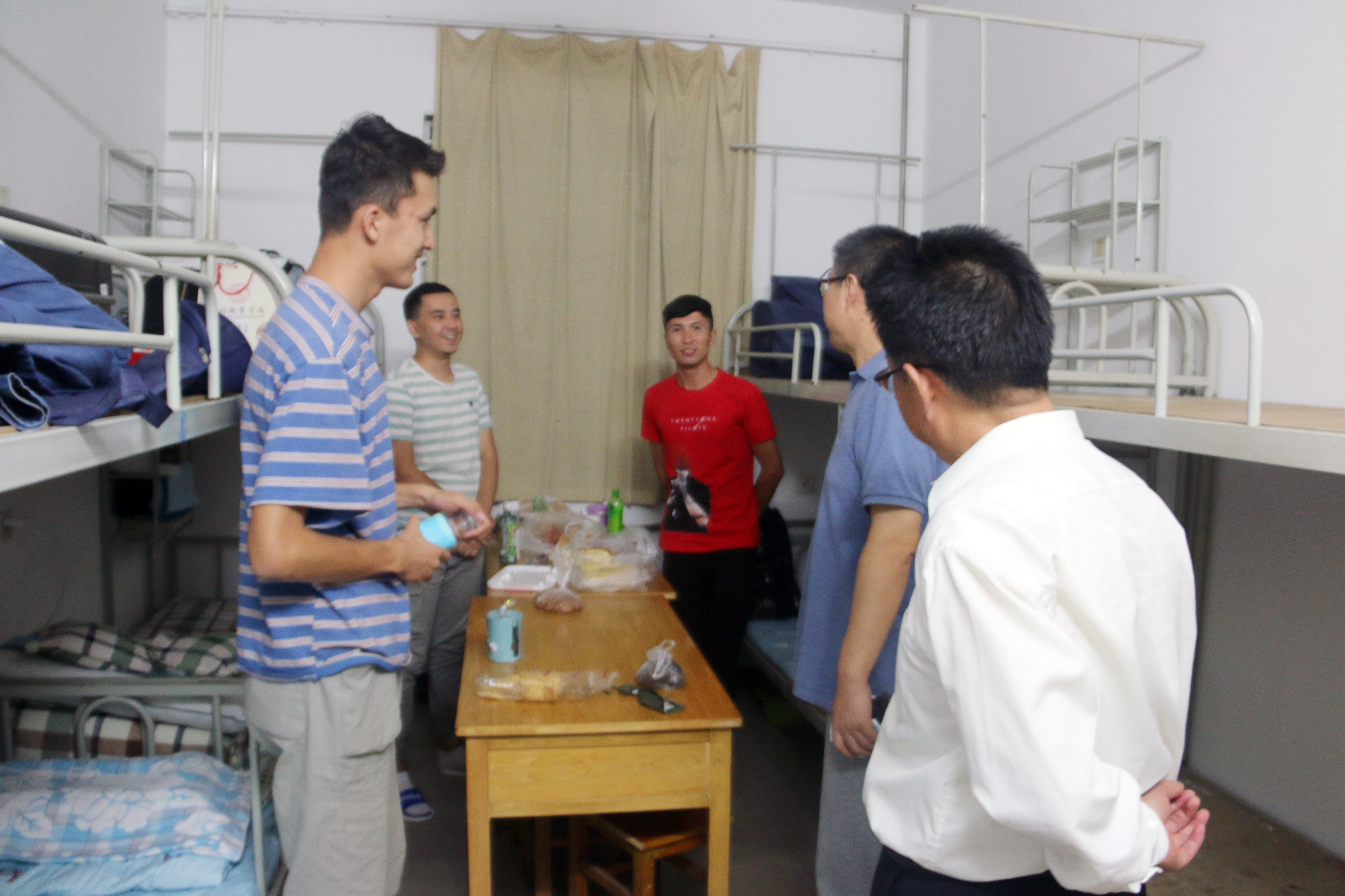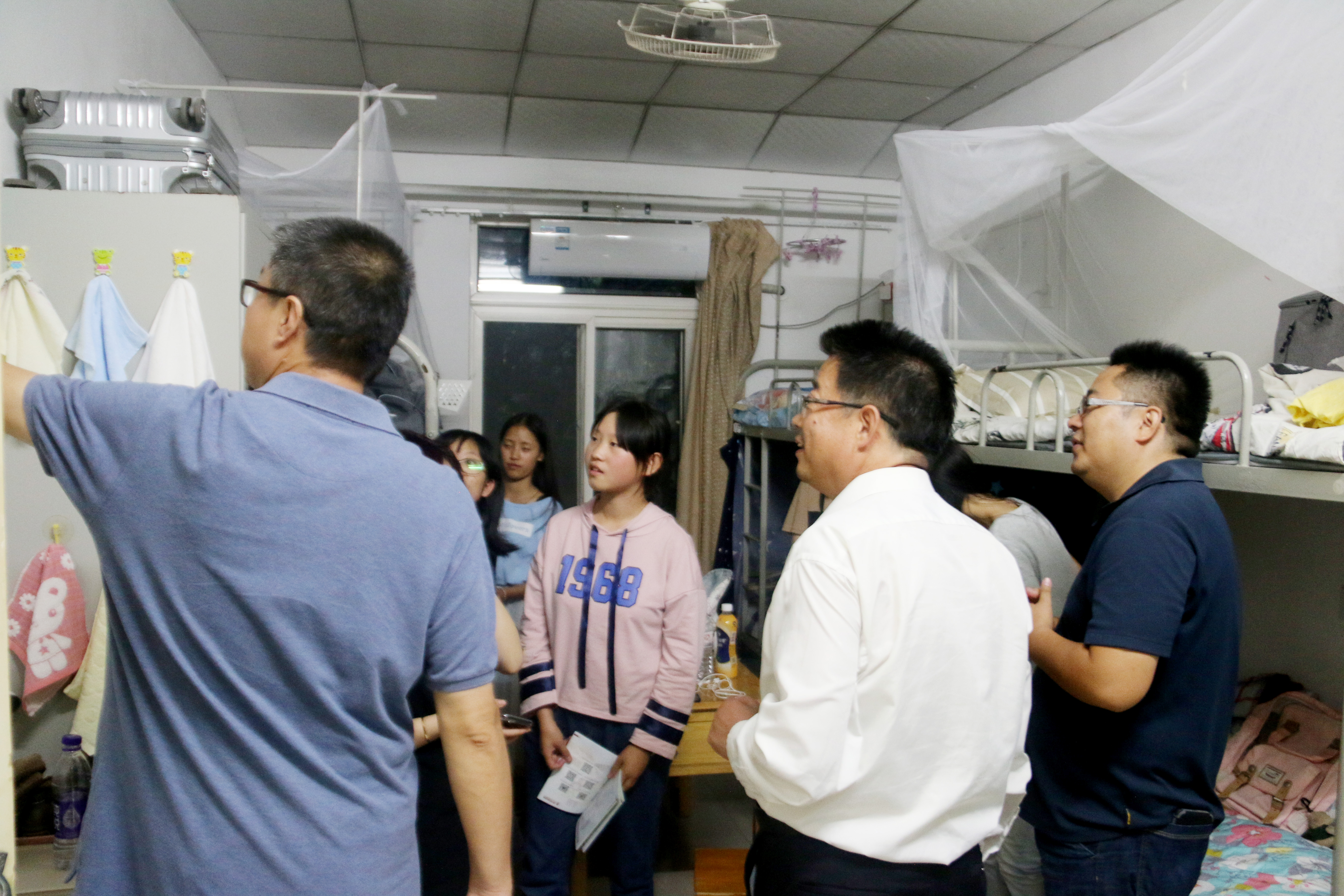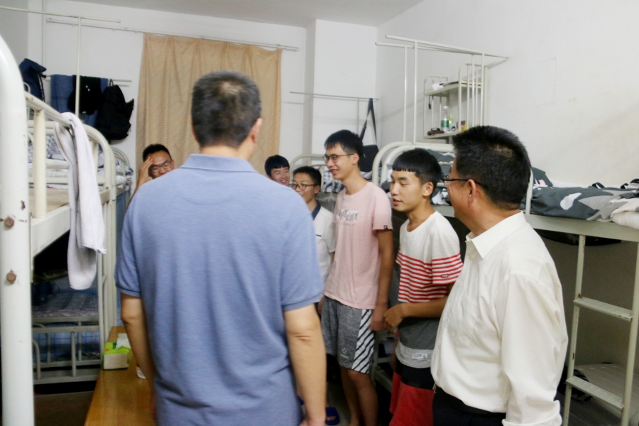 院长冯建新、党总支书记郑生忠、党总支副书记窦文阳和专兼职辅导员们对本届新生寝室进行了走访,此举体现了omofun