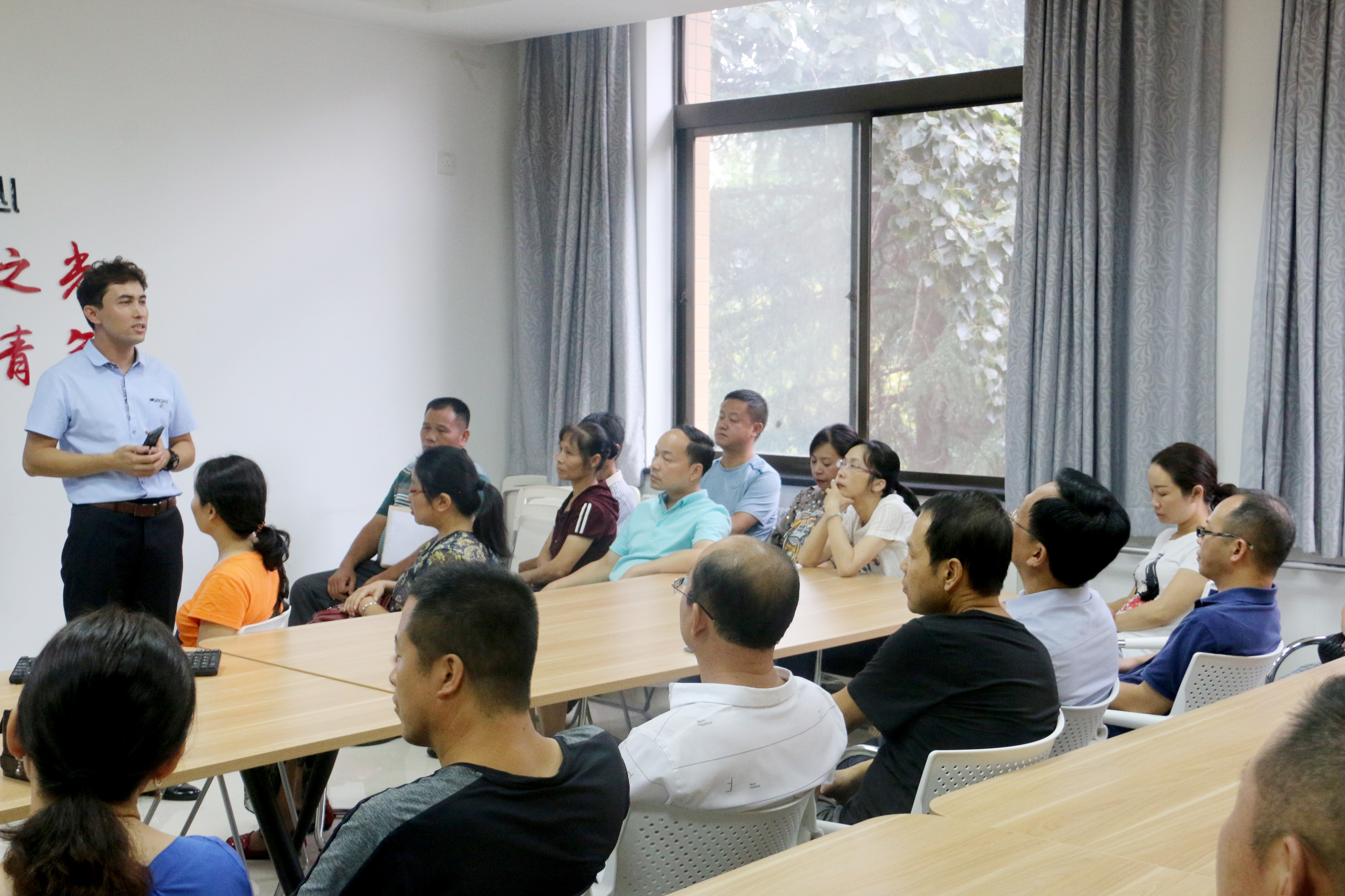 专兼职辅导员老师们当天下午5:30分召开了新生家长见面会,为了让家长对学院有全面的了解,给家长们播放了omofun
