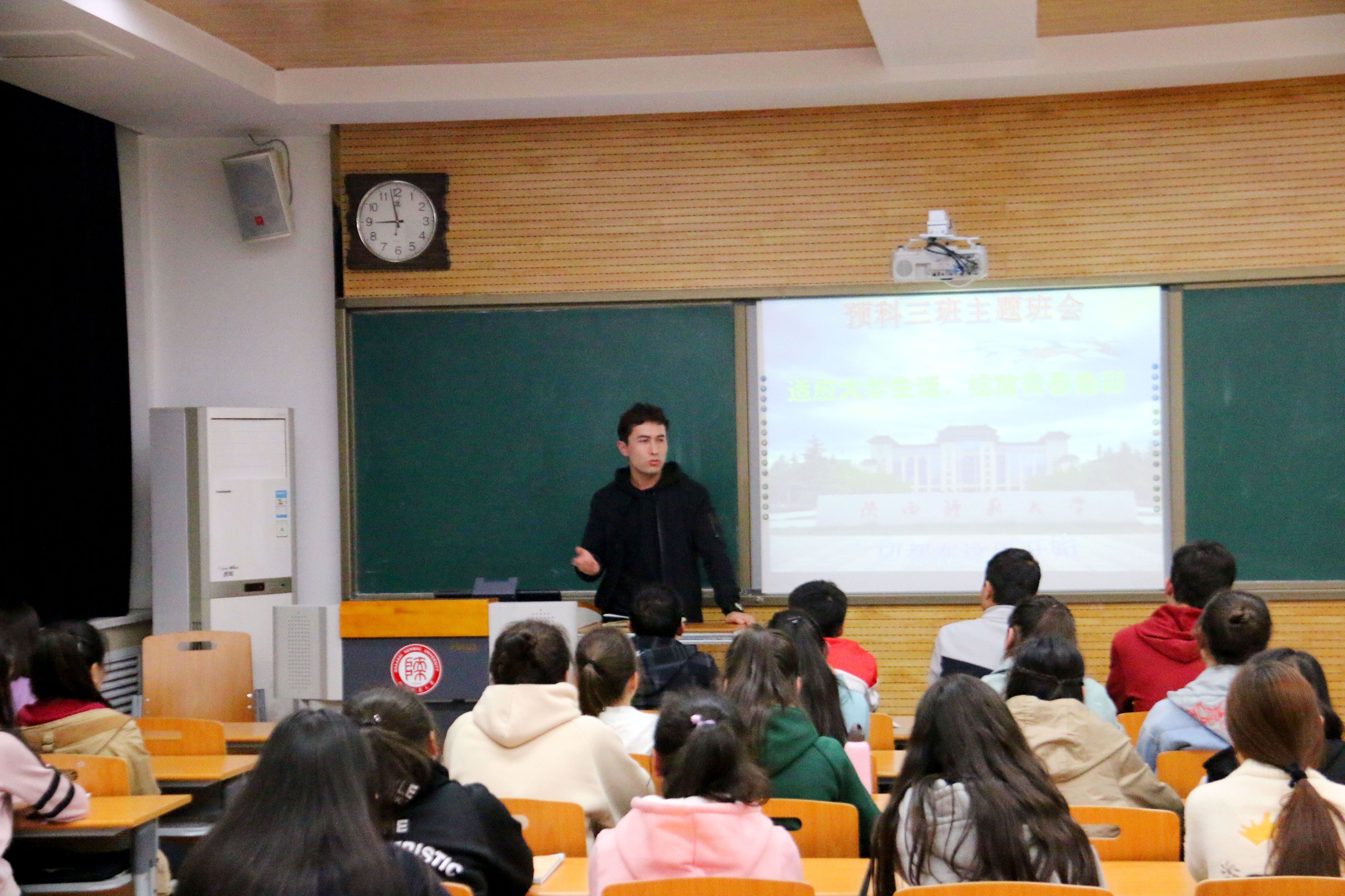 2018级预科三班在九号楼9707教室召开了以“适应大学生活,绽放青春色彩"为主题的团日活动。omofun