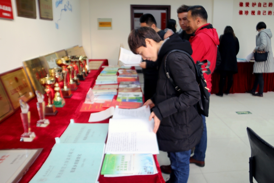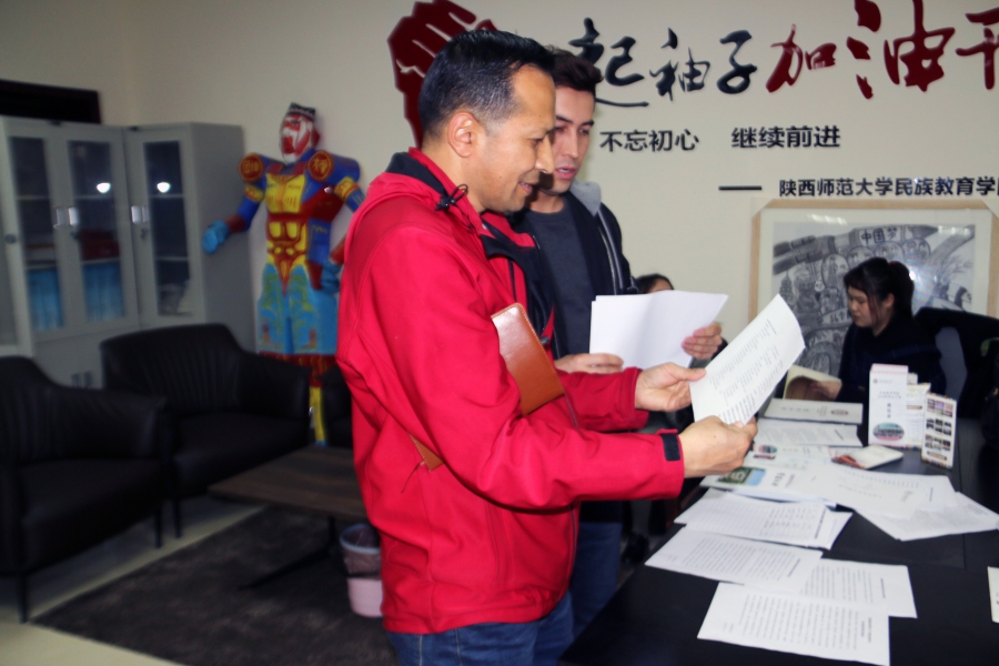 调研交流学生工作,陕西中医药大学招生办副主任赵丽、少数民族学生专职辅导员努尔加拿提、新疆内派服务管理教师阿不来提·卡地尔以及omofun