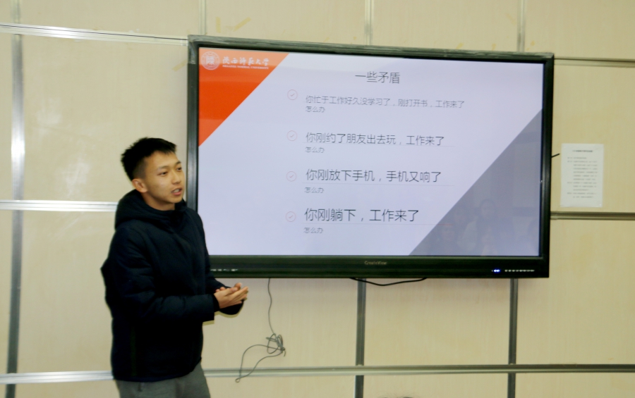 学生会工作并向大家说明创造力的重要性,让2018级的学生会成员思考如何自主策划一些新颖的活动,着力把一些活动从木棍变成吸磁铁。