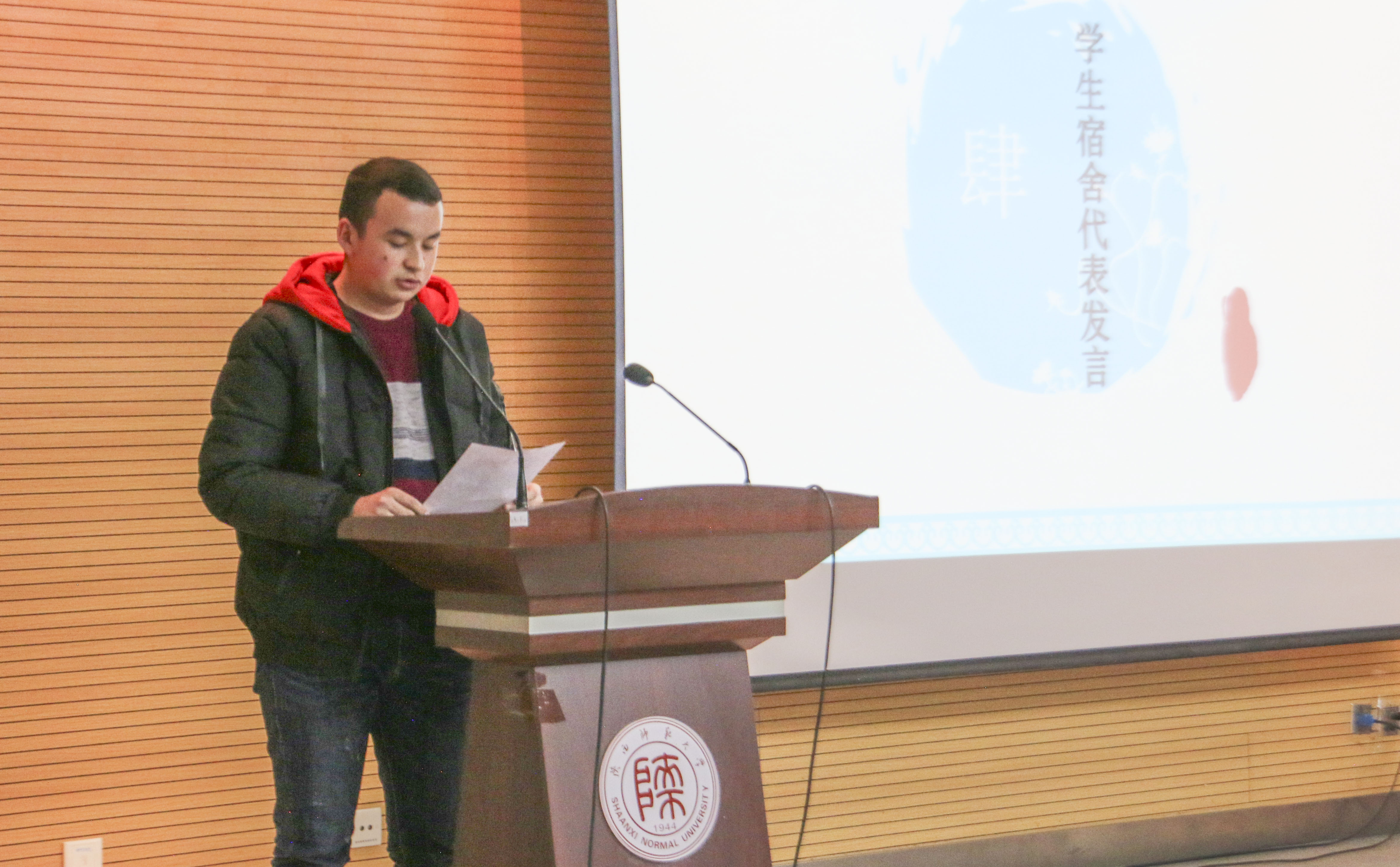 大会最后,郑生忠老师为我们的活动进行总结,首先他为宿舍文化节圆满成功表示祝贺,老师为我们介绍他在陕师大的亲身经历,所分享的故事启示我们要珍惜在大学宿舍的点点滴滴,要像爱家人一样去爱自己的舍友,无论为这个集体付出多少都是值得的。从宿舍生活的点滴可以看出郑老师乐观的生活态度和对舍友浓浓的情谊,让我们受益匪浅。最后他提出三点要求,第一,学会交往和包容;第二,养成正确的学习态度和良好的学习习惯;第三,整体发展,互相促进学习。他强调,文明、和谐的宿舍环境对大学生的成长至关重要,他希望每位同学增强宿舍文化建设意识,共同营造整洁、舒适、和谐的生活环境和文化氛围,将“学生宿舍文化建设月”活动打造成为omofun