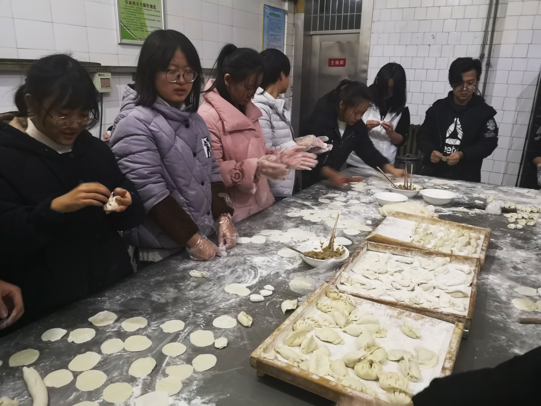 预科二班于2018年12月25日晚七点半,在雁塔校区墨香斋一楼餐厅,举办了“饺皮圆圆,二班心连”主题团日活动。