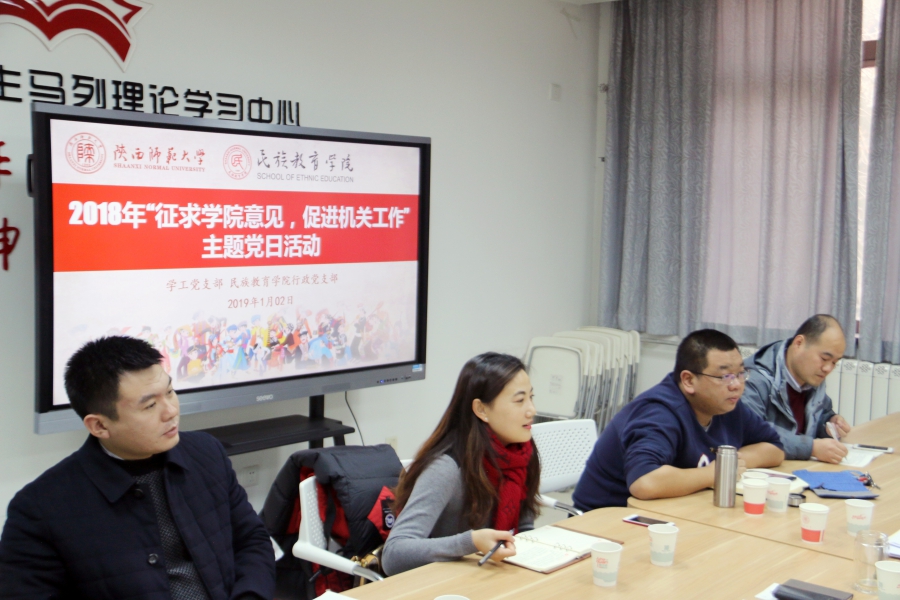 与党委学工部(学生处)学工党支部开展了“征求学院意见、促进机关工作”主题党日活动。党委学工部(学生处)副部(处)长、学工党支部书记蒋毓新,少数民族教育管理科科长李钊,雁塔校区综合管理科科长李晨子,干部雷培强、白克阿力与omofun