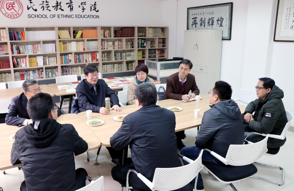 校长游旭群听完大家的汇报后,对学院开学伊始突出重点、部署及时、运转良好的准备工作态度和饱满的工作热情给予了肯定和表扬。游旭群详细询问了学院师生返校报到、教学工作运行、学生思想状况、安全隐患排查等情况,以及学院在工作中存在的困难和问题,并提出指导意见。他希望学院牢固树立安全防范意识。抓安全稳定,抓团结、促发展,颂党恩、育师德,进一步加强师资队伍建设,提高学院整体教学科研实力,鼓励年轻教师勇于进行科研创新,找准办学突破方向,打造少数民族预科品牌,推动学院更好更快地发展。希望全院教职工持续发力,在2019年再创佳绩,为学校的安全稳定和双一流建设发展做出贡献。游旭群校长还就omofun
