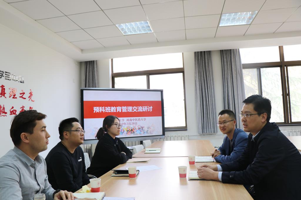 河南中医药大学管理学院党委副书记庞亚宾对本次调研学习的目的和内容进行了简单说明。双方针对预科班学生日常思想政治教育和事务管理工作、教学工作、民族宗教工作以及人才培养模式等方面遇到的问题和困难进行了热烈而深入的研讨和交流。