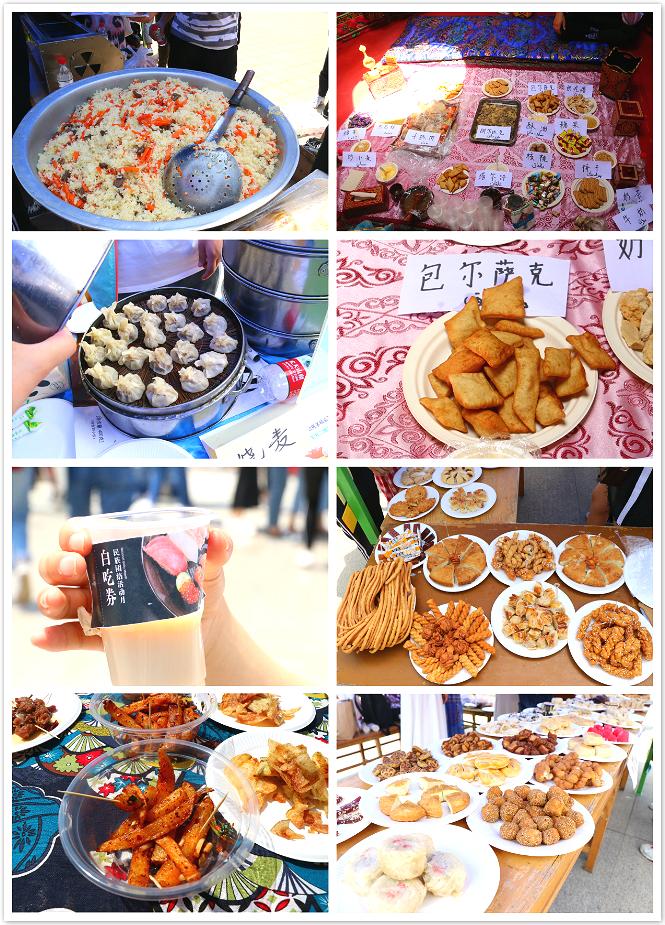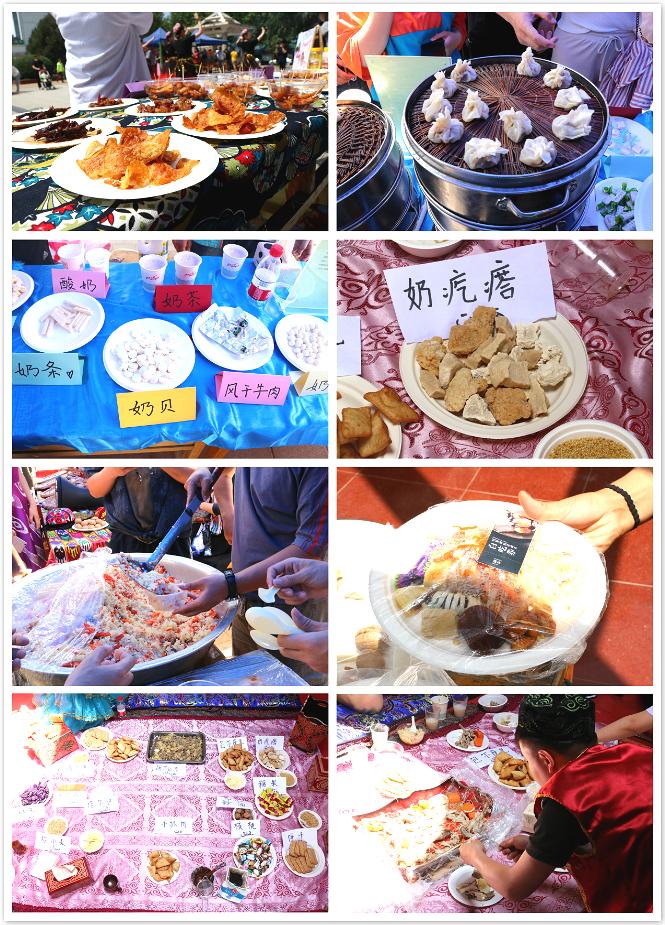 伴随着哈萨克族、傣族和维吾尔族等舞蹈的热烈欢呼,来自不同地区的特色美食在各个独具一格的帐篷下展出。