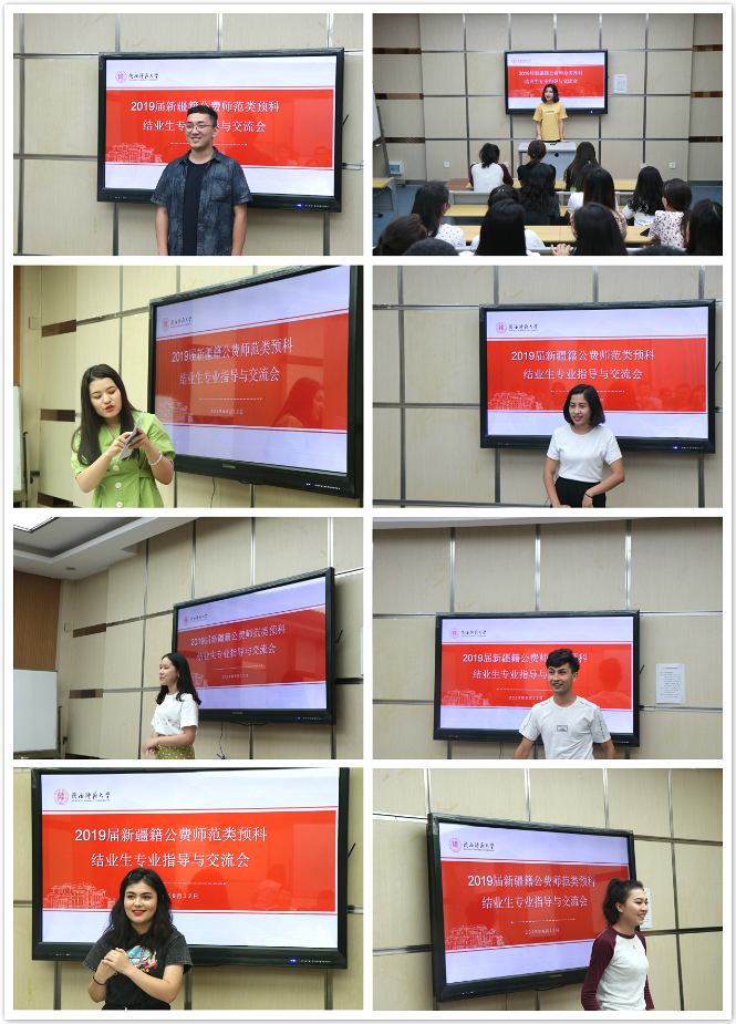 2018届新疆籍公费师范类文理科专业学生代表,与本届即将结业的预科生进行了专业选择指导和交流。