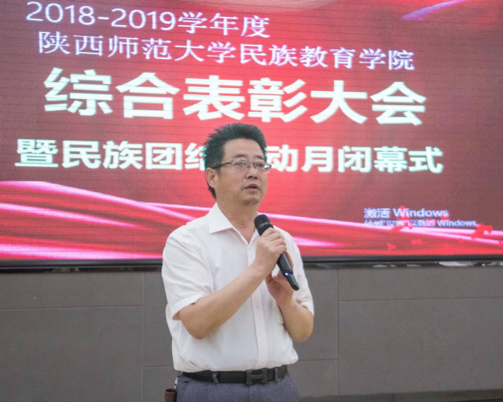 2018-2019学年度学生综合表彰大会暨民族团结活动月闭幕式在雁塔校区启夏苑二楼礼堂圆满落幕。院长冯建新、党总支书记郑生忠、副书记窦文阳,新疆内派服务管理教师买买提·热合曼、邹璐洁、孙国强,教师代表段亚绒、赵辉、马元丽、成珊娜、谢欣然、乔露、戴妍、刘丁,专兼职辅导员及学院研究生、预科生参加结业大会,大会由预科一班马迎新、韩希玥、预科二班邹粤龙与预科三班艾利同学主持。