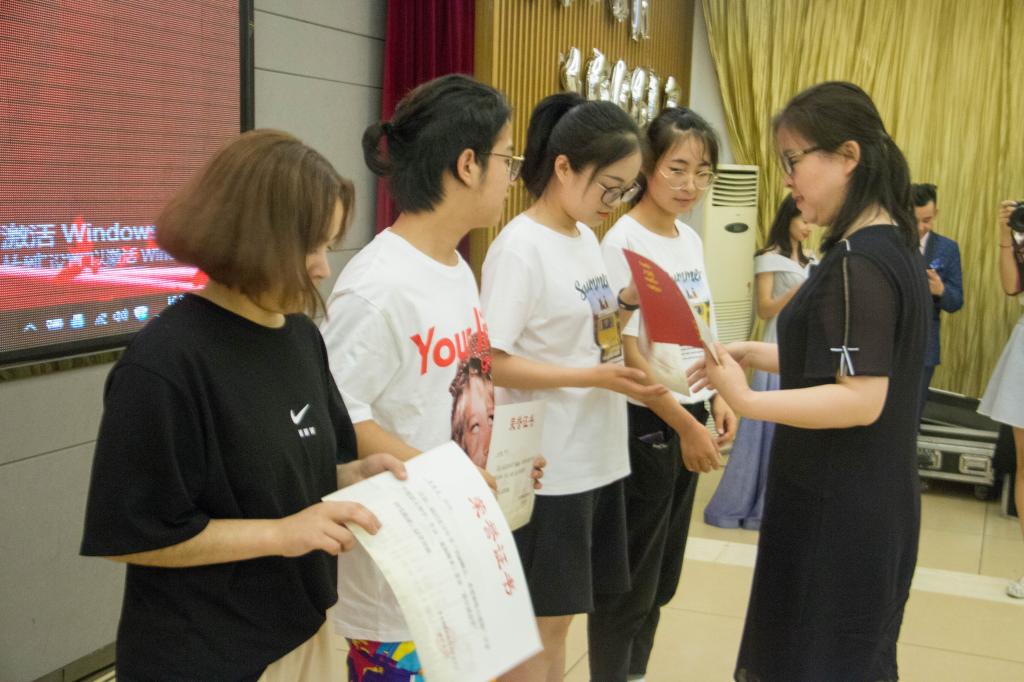 2018-2019学年度优秀学生综合表彰决议,他希望受表彰的同学珍惜荣誉,戒骄戒躁,以更加优异的成绩争取更大的进步。他号召全院学生以获奖学生为榜样,积极进取,奋发成才,乘时代春风,扬青春梦想,积极拥抱和奋进新时代,让青春在为学院、为母校、为祖国、为人民的奉献中焕发出更加绚丽的光彩!随后,由学院教师代表为获得“美丽师大我想和你合张影”摄影比赛优秀作品、“读懂中国”获奖征文、“家乡的新变化”获奖征文、2018级优秀研究生、优秀学生干部、外语优秀个人、文艺活动先进个人及优秀运动员等多位获奖同学颁发了荣誉证书并合影留念。