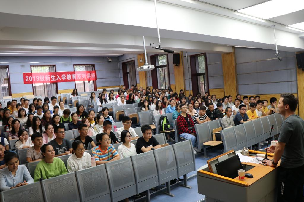 9月10日上午,2019级新生入学教育系列讲座第一讲在我校雁塔校区五号教学楼5101教室开讲。讲座由omofun