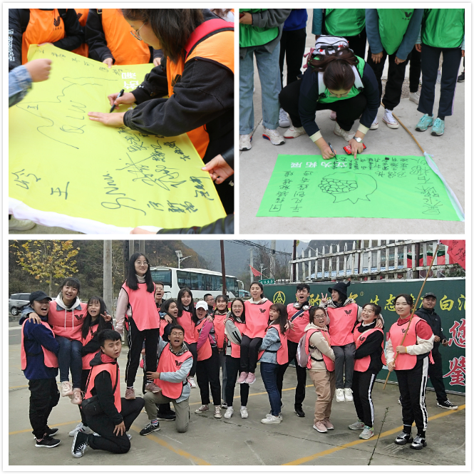最后,全体学生及学院老师们在求生墙前合影留念。一天的拓展训练在大家的欢声笑语中圆满结束。