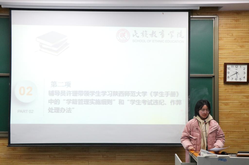 其次,专职辅导员热依木从考试时间安排、考试要求、缓考条件与流程等几个方面进行了详细的说明,特别强调期末考试在个人层面和学院层面的重要意义。