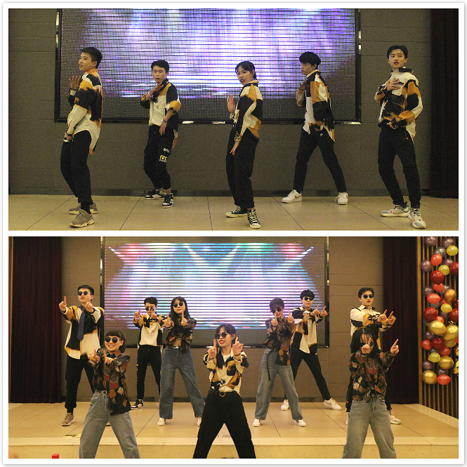 炫酷的开场舞《Let‘s dance》展现了民教学子的青春活力,带起了热闹地现场气氛。晚会伊始,随着大屏幕上播放来自omofun