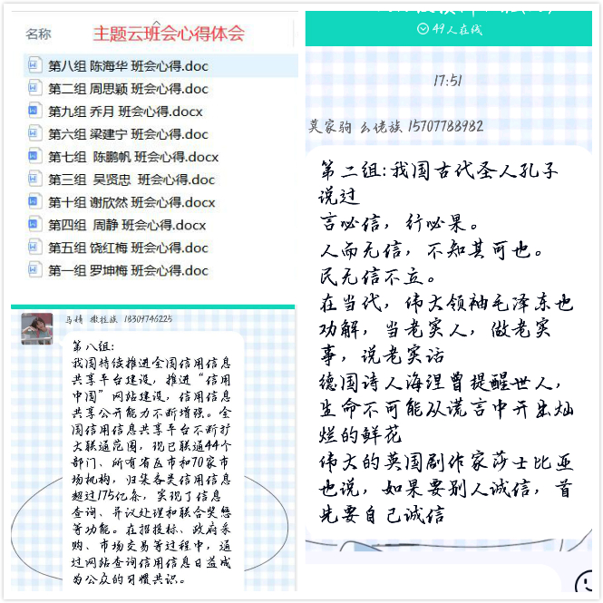 打破原有的线下活动思维,利用网站宣传、学院公众号、微信参与、班级推广、钉钉等平台开展活动,充分利用微信公众号等新媒体平台进行广泛宣传,召开主题云班会、推送征文、诚信创新作品、诚信劳动打卡等系列活动内容,并将“校、院、班”及各学生干部组织有机结合起来,倡导了良好的“树诚信风尚,做文明青年”校园文化和诚信氛围。