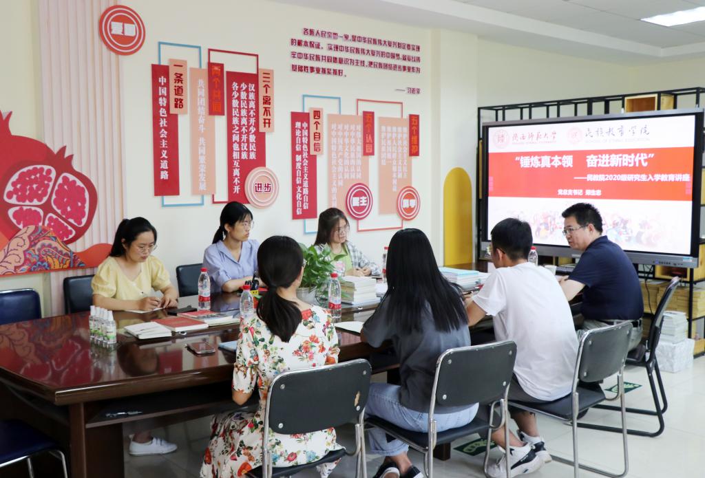 党总支书记郑生忠为2020级研究生新生作了题为“锤炼真本领,奋进新时代”的新生入学教育专题讲座。讲座引发了同学们对“真本领”和“新时代”的深层思考。