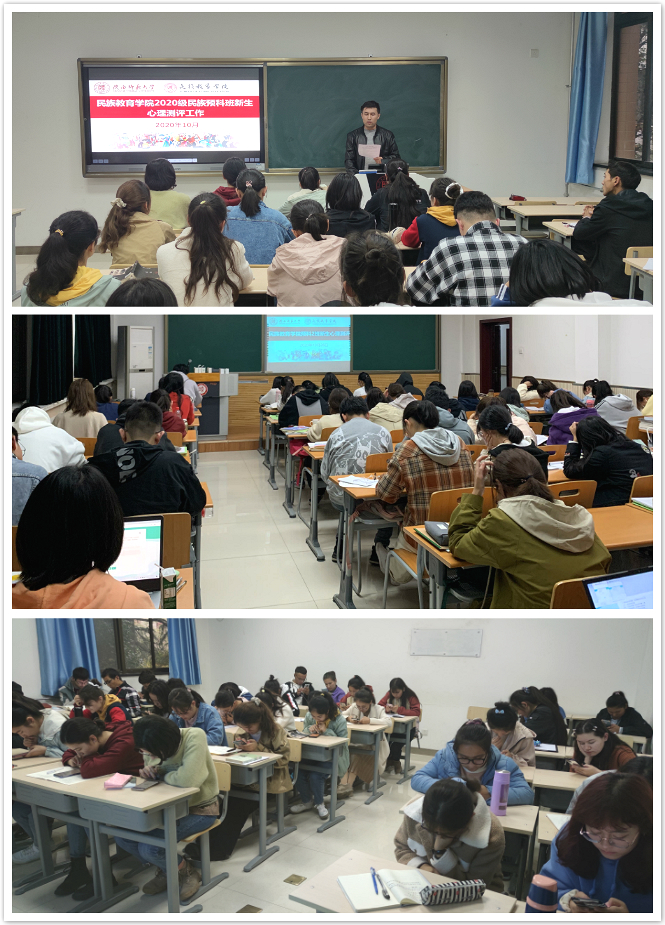 于2020年10月26-27日两天专兼职辅导员和心理委员在六附楼214教室和九号教学楼9703、9705教室指定时间组织新生集中测试,测评对同学们的心理健康问题做出摸底排查,使日后的心理健康教育工作更具针对性,测评采用网上答题形式,测评结果将会严格保密,不会录入档案,不会对成绩、考核、升学、评优等任何方面造成负面影响。在同学们了解情况后对本次测评工作表示出了理解和支持,愿意接受学校调查测评。测试开始之前,专兼职辅导员对本次测试的注意事项作了简要阐述,使同学们了解心理测评的目的和意义,希望同学们能够认真答题,专心测验。