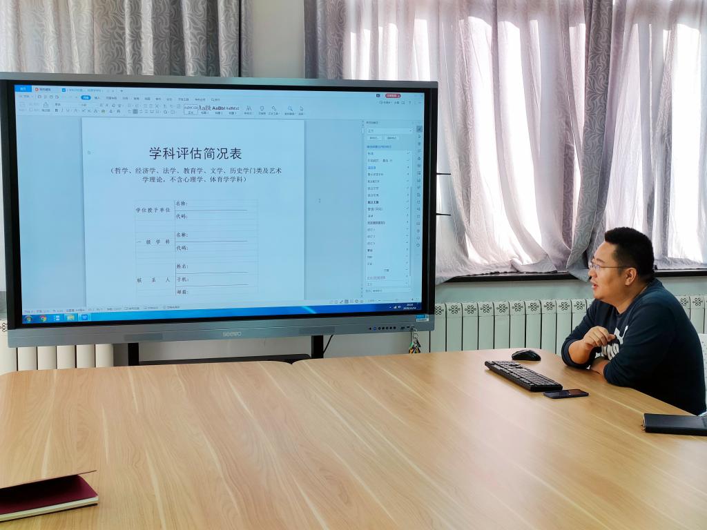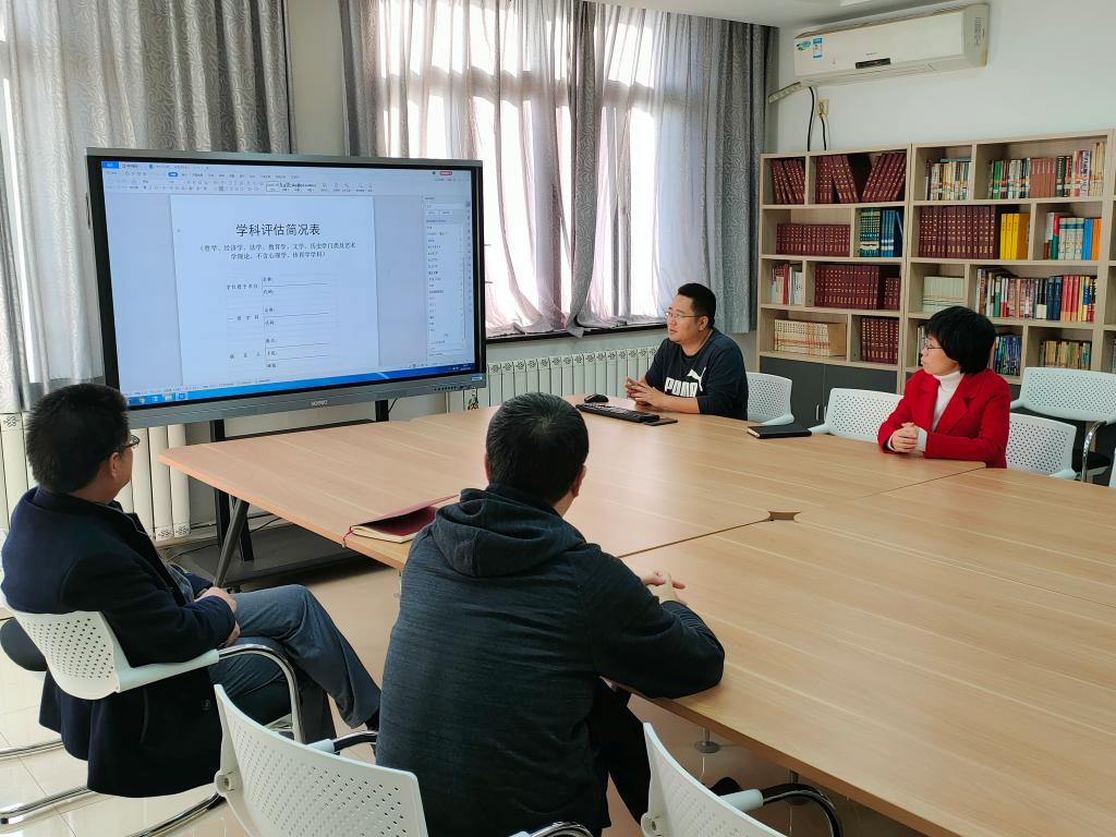 为做好教育部第五轮学科评估迎评工作,11月19日上午,学院党总支在六附楼305会议室召开第五轮学科评估工作部署会。学院党总支书记郑生忠、院长冯建新、党总支副书记、行政副院长窦文阳、教学秘书贾文红及专职辅导员热依木参加了会议。会议由窦文阳主持。