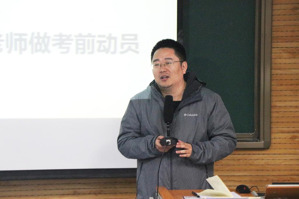 党总支副书记窦文阳老师做期末考试动员讲话。首先,窦老师类举了以往我校和学院考试中出现的考试作弊典型事件和受到处分的案例,对诚信考试做了详细说明,希望同学们引以为戒,积极备考,诚信应考。其次,窦老师向同学们提出几点建议与要求:一、正确认识、高度重视,端正态度、树立自信,严肃考纪、诚信考试;二、夯实基础、理清复习思路、提高复习的效果,在本次期末考试中取得好成绩;三、尽快确立目标,明确学习任务。