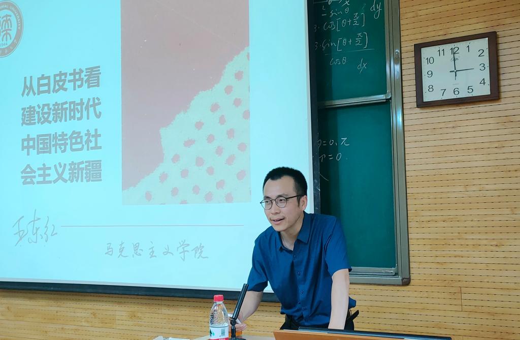 “传承红色基因,铸牢中华民族共同体意识”党史学习教育系列讲座第二讲在雁塔校区五号教学楼5301教室开讲。我校马克思主义学院王东红副教授作了题为“从白皮书看建设新时代中国特色社会主义新疆”的党史学习教育辅导报告。omofun